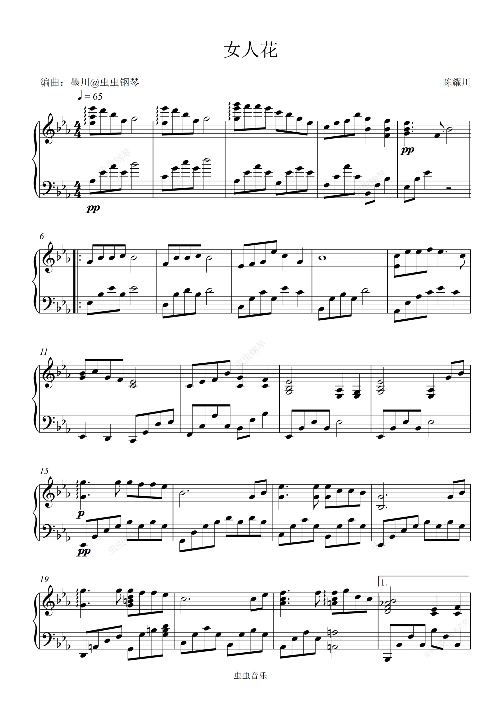 钢琴谱:女人花—梅艳芳—原调降E完美改编