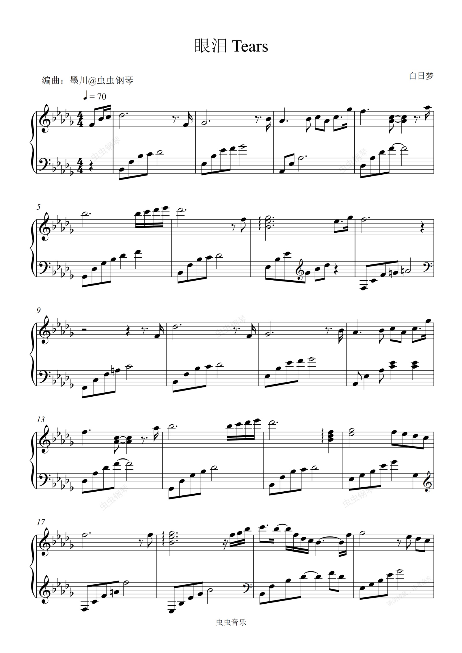 钢琴谱:眼泪 Tears—白日梦—原调降b小调