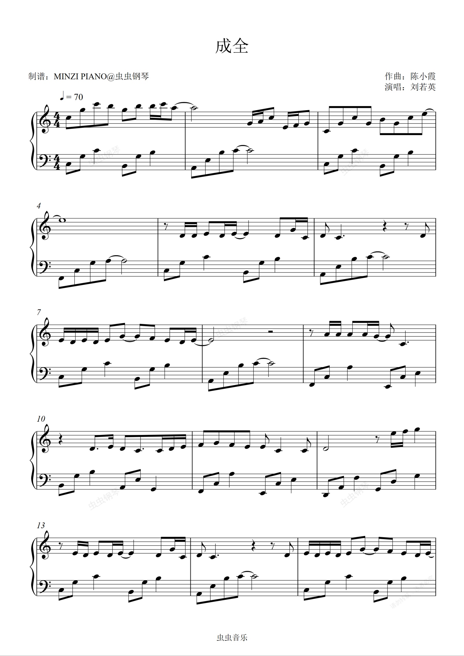 钢琴谱:成全-刘若英