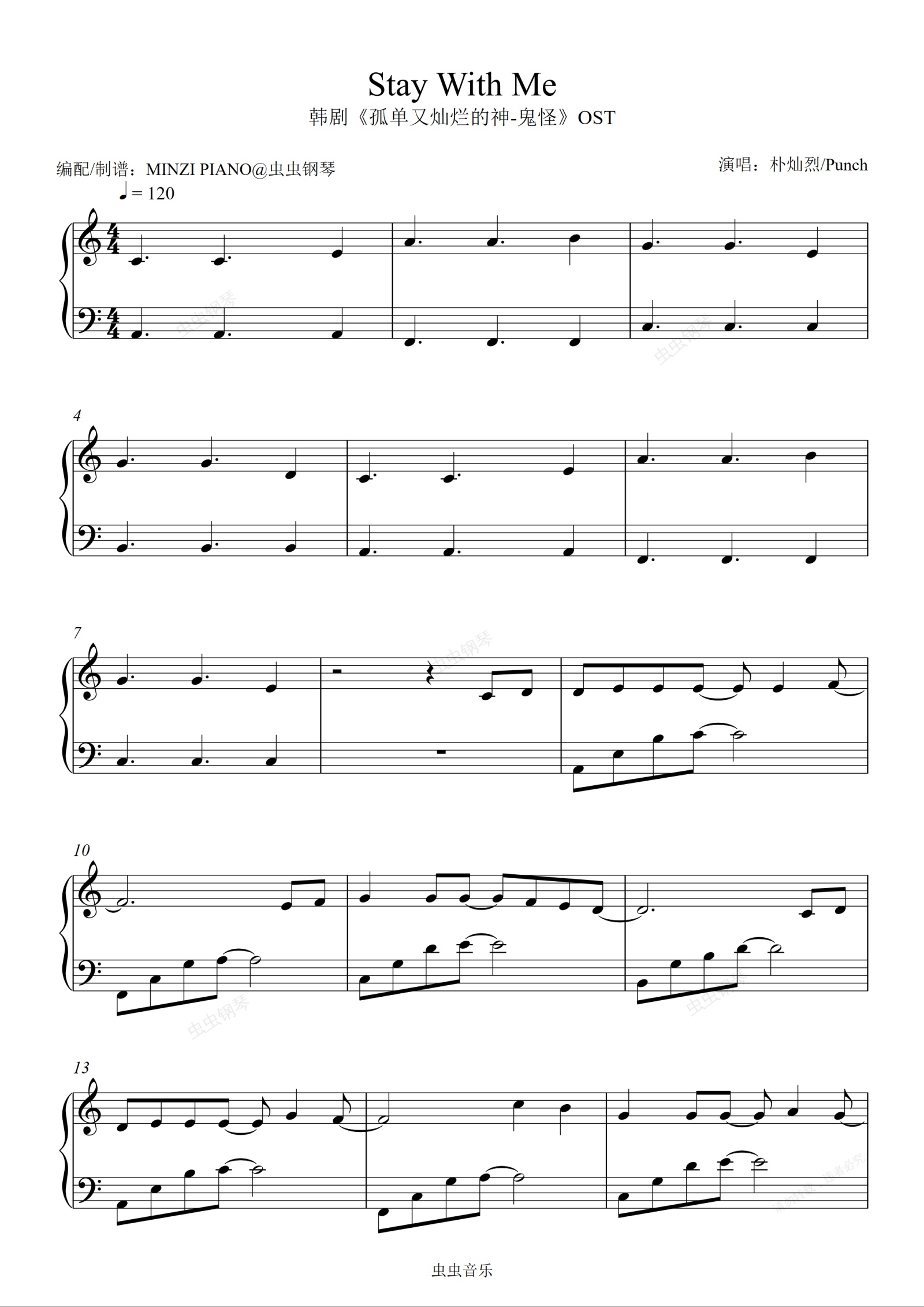 钢琴谱:Stay with me-孤单又灿烂的神 C调