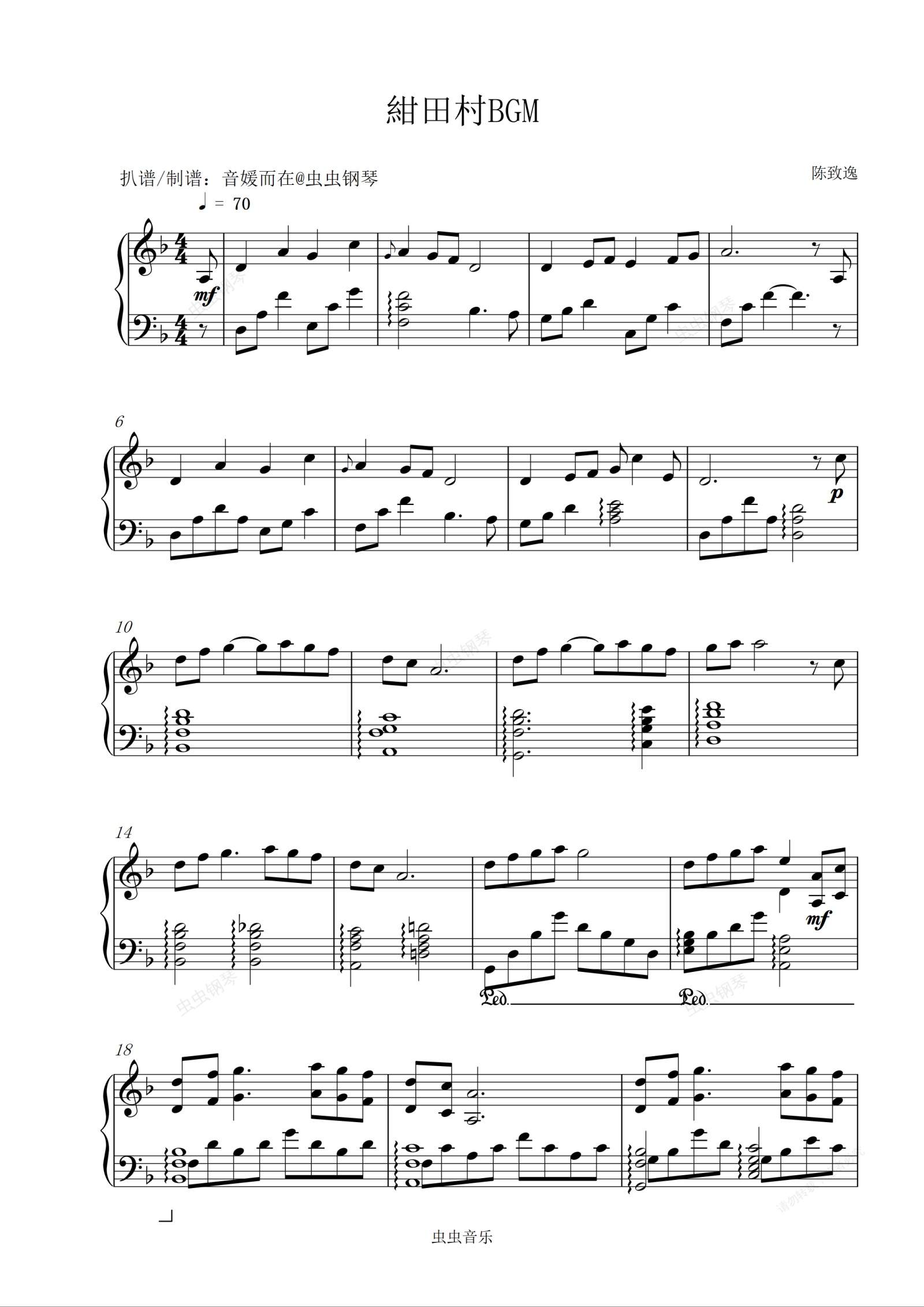 钢琴谱:原神/钢琴 - 绀田村(夜晚)BGM【钢琴轻音乐 | 舒缓音乐】