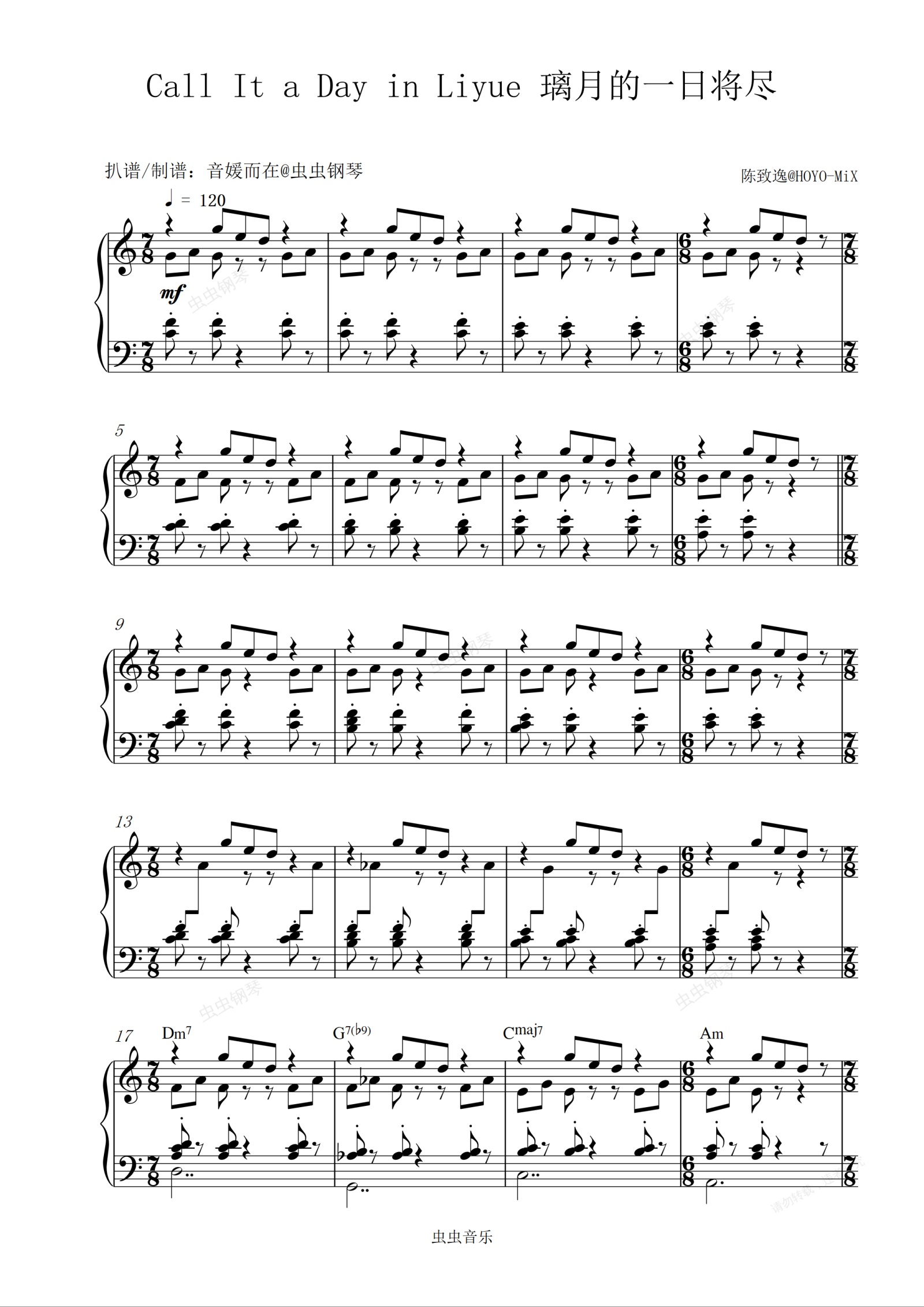 钢琴谱:【原神】Call It a Day in Liyue 璃月的一日将尽