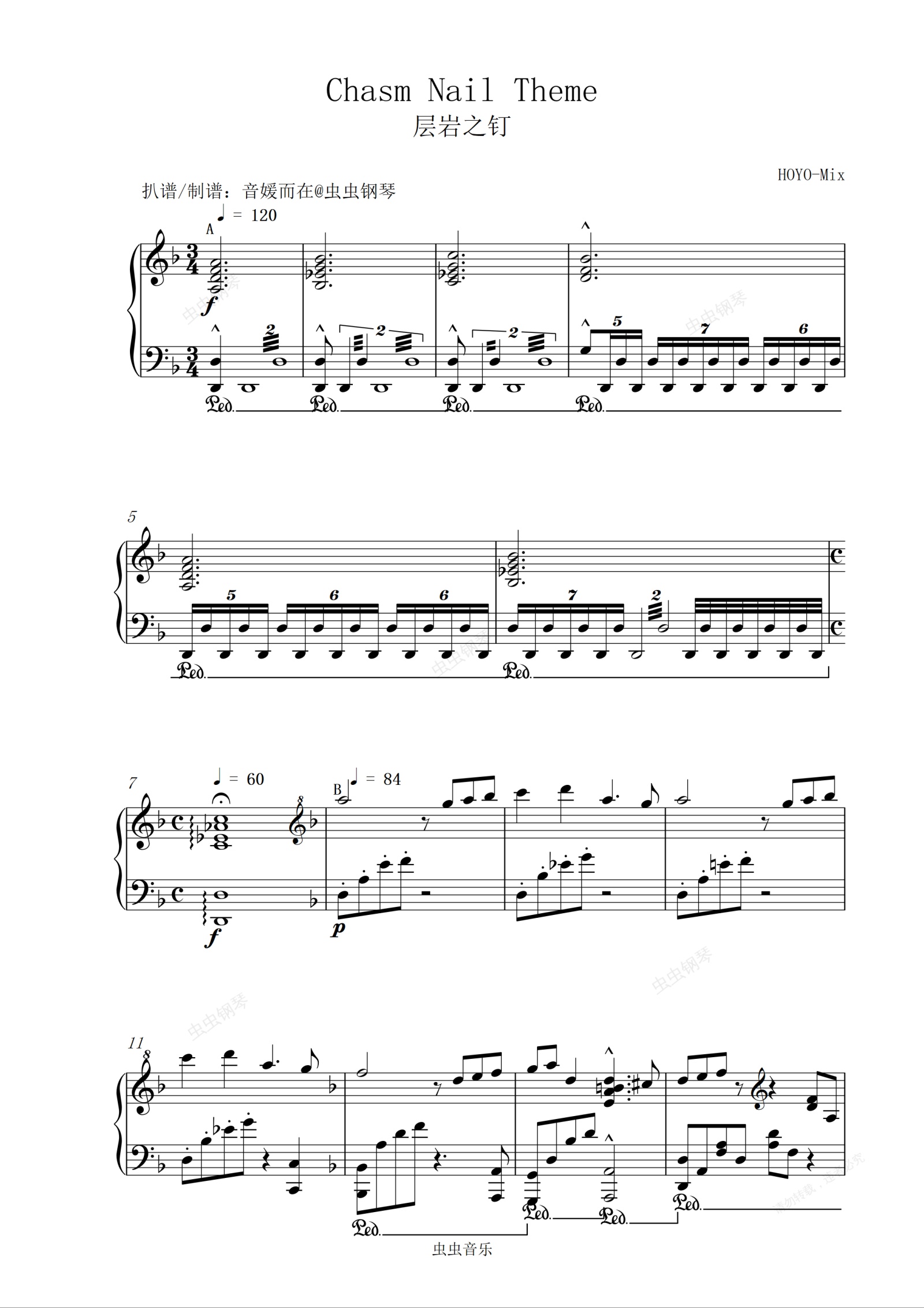 钢琴谱:【原神】层岩巨渊 岩底之钉 这次是王炸!!