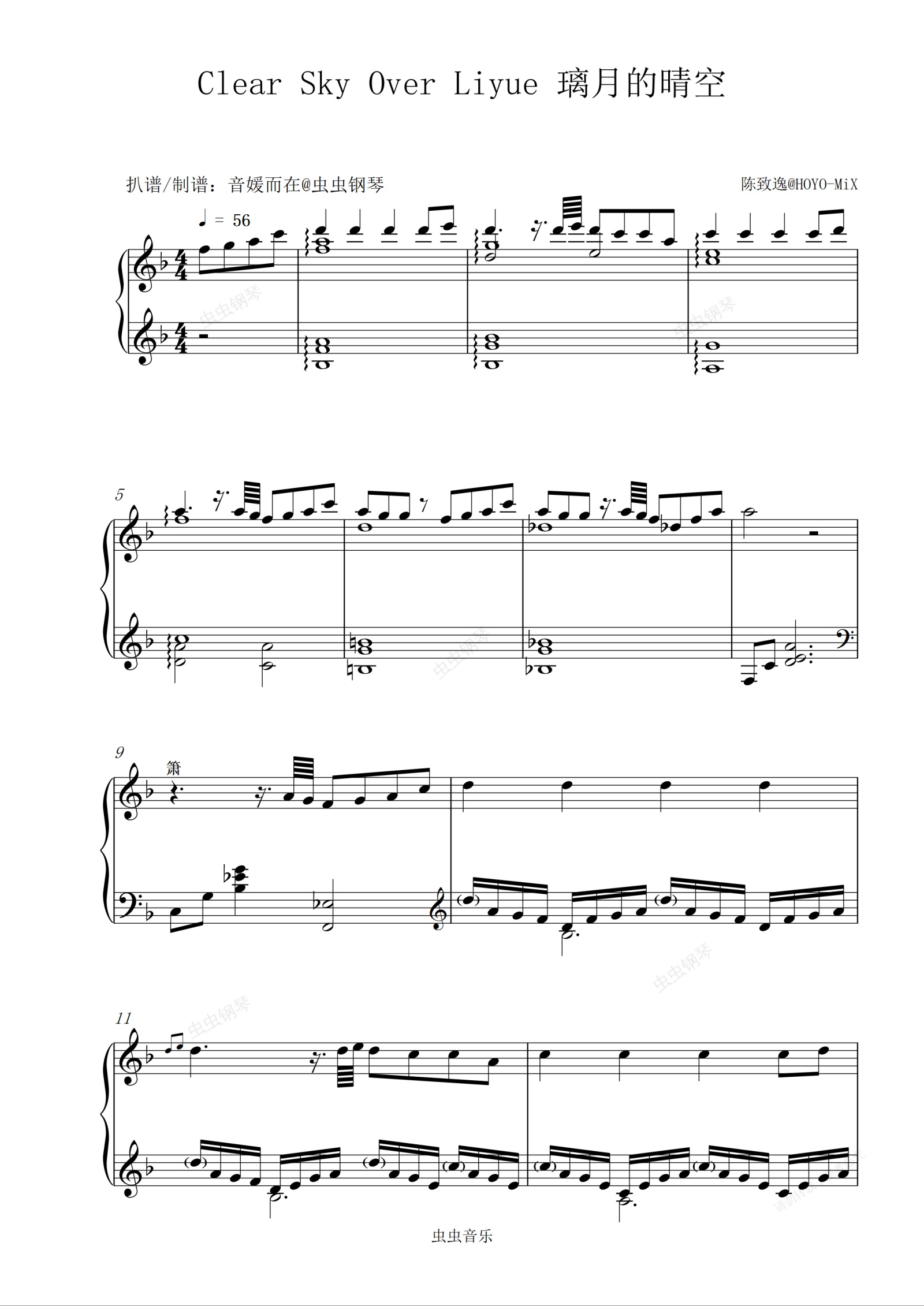 钢琴谱:【原神】Clear Sky Over Liyue 璃月的晴空
