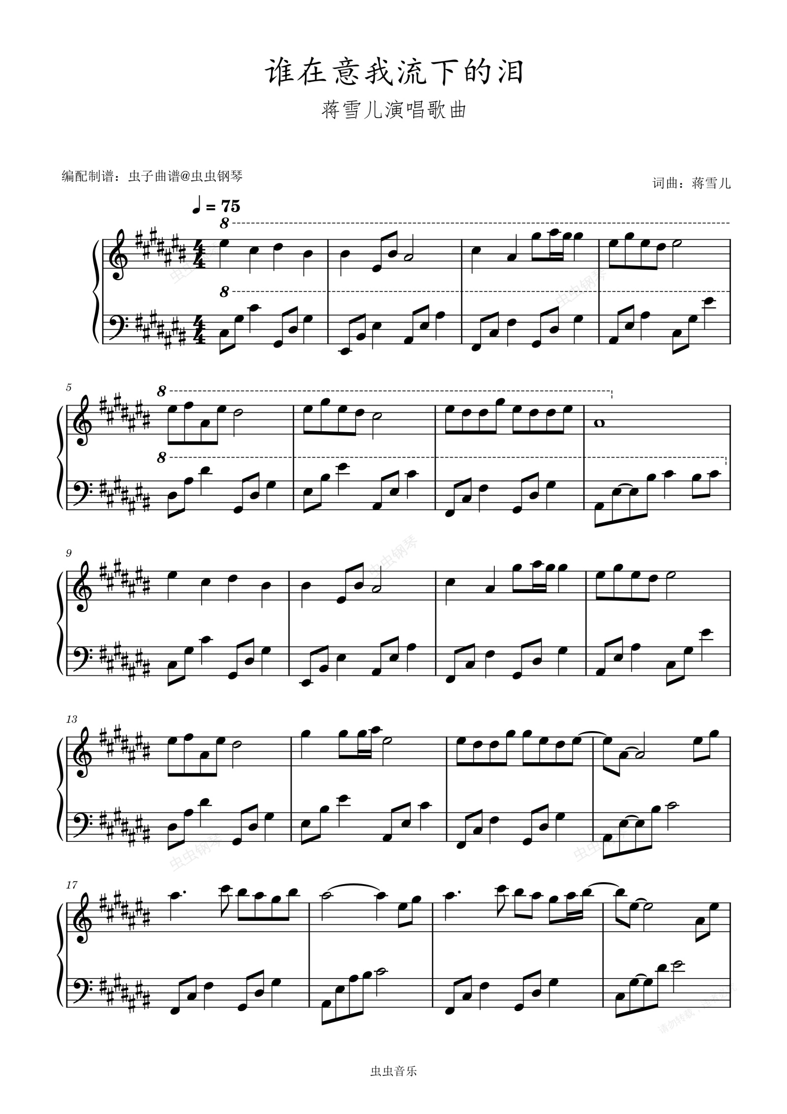 钢琴谱:谁在意我流下的泪 - 选C#大调编配 - 蒋雪儿演唱