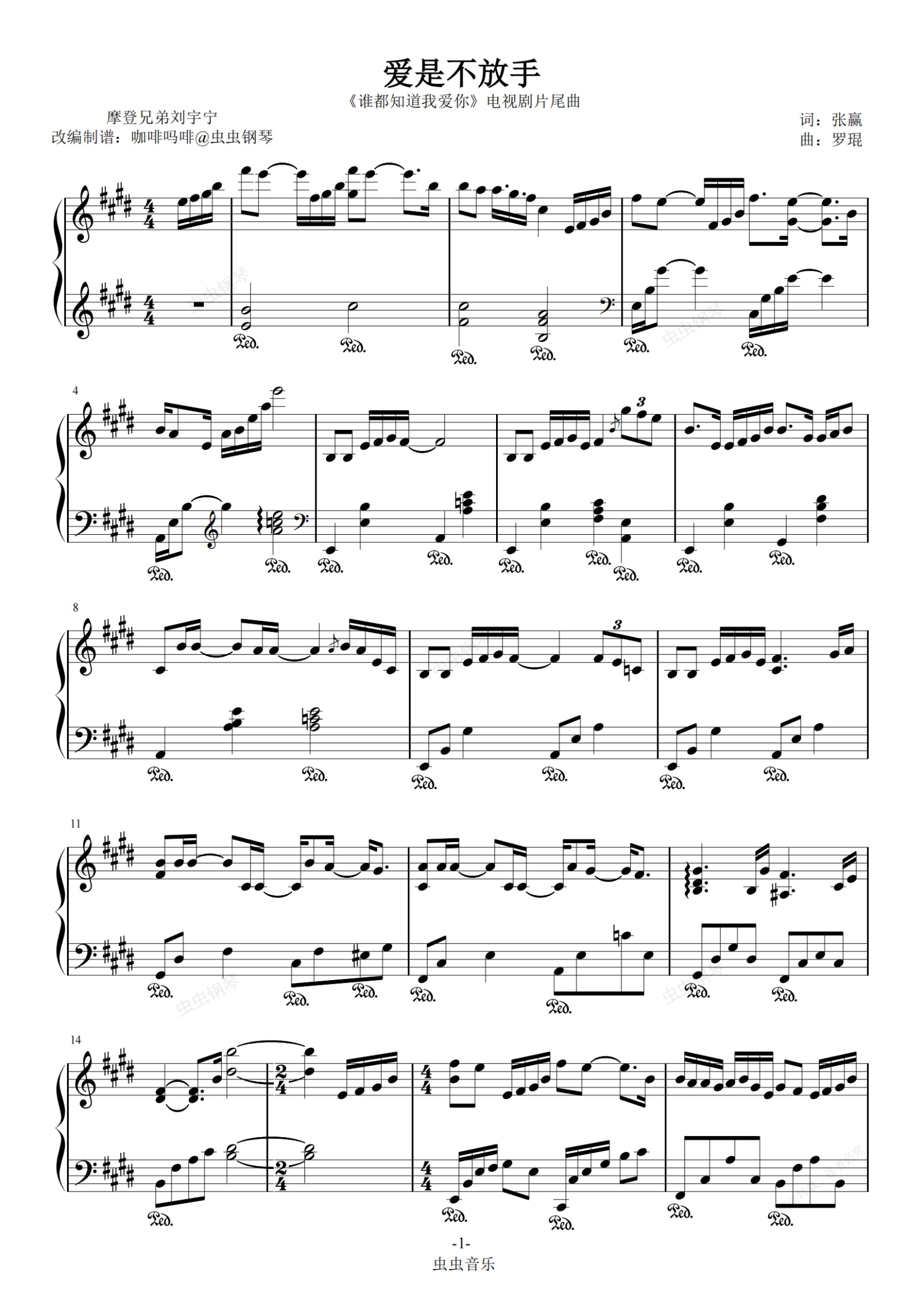 钢琴谱:爱是不放手-摩登兄弟刘宇宁 钢琴谱
