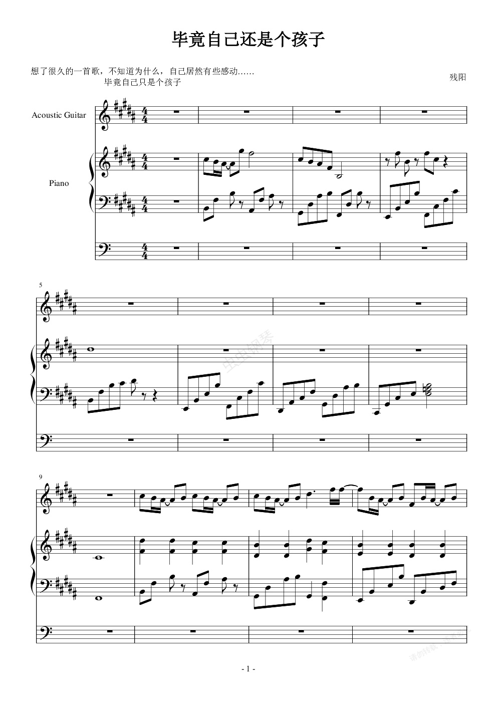 钢琴谱:毕竟自己只是个孩子(演唱版)