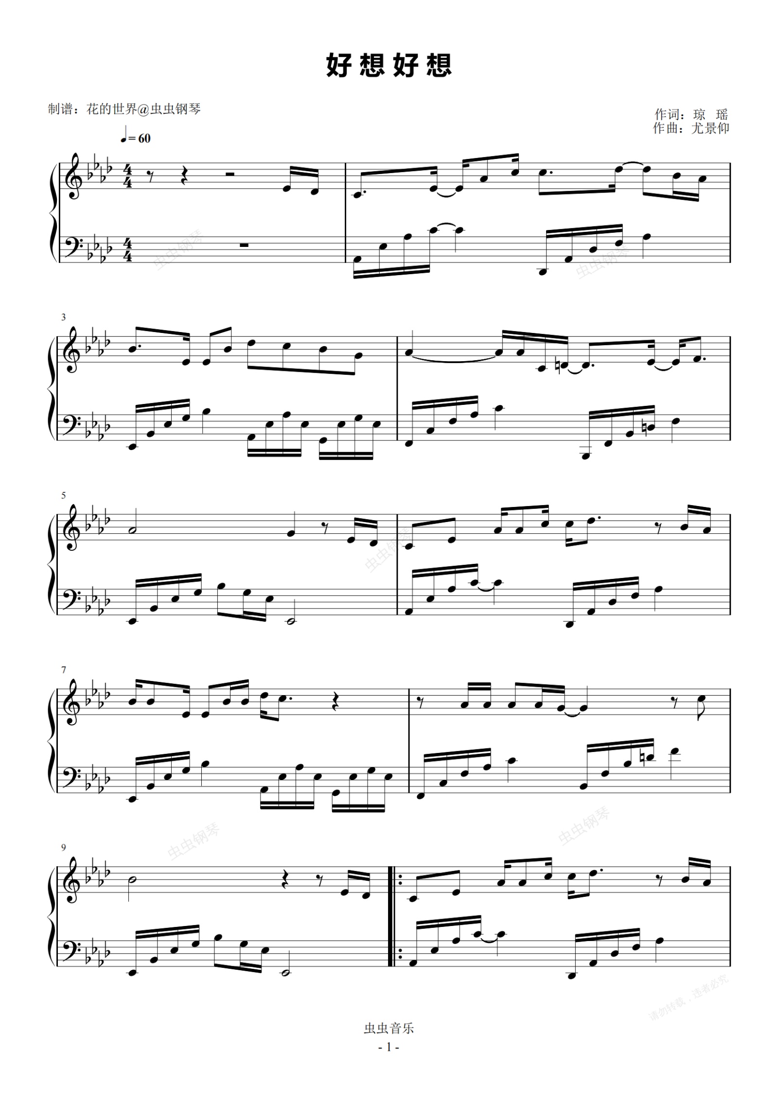 钢琴谱:好想好想  原调简易版  赵薇 /古巨基