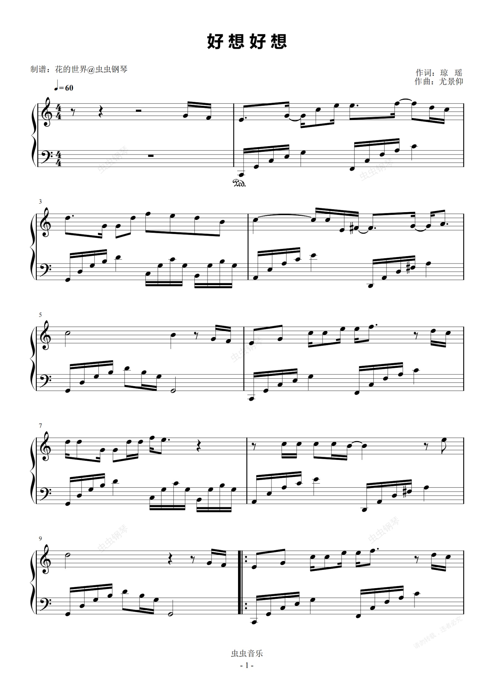 钢琴谱:好想好想  C调简易版  赵薇 /古巨基