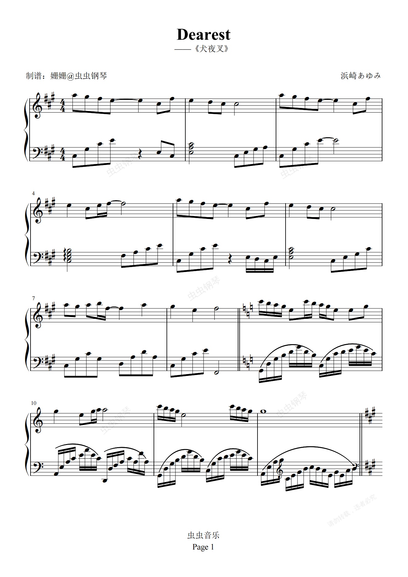 钢琴谱:Dearest—《犬夜叉》浜崎あゆみ
