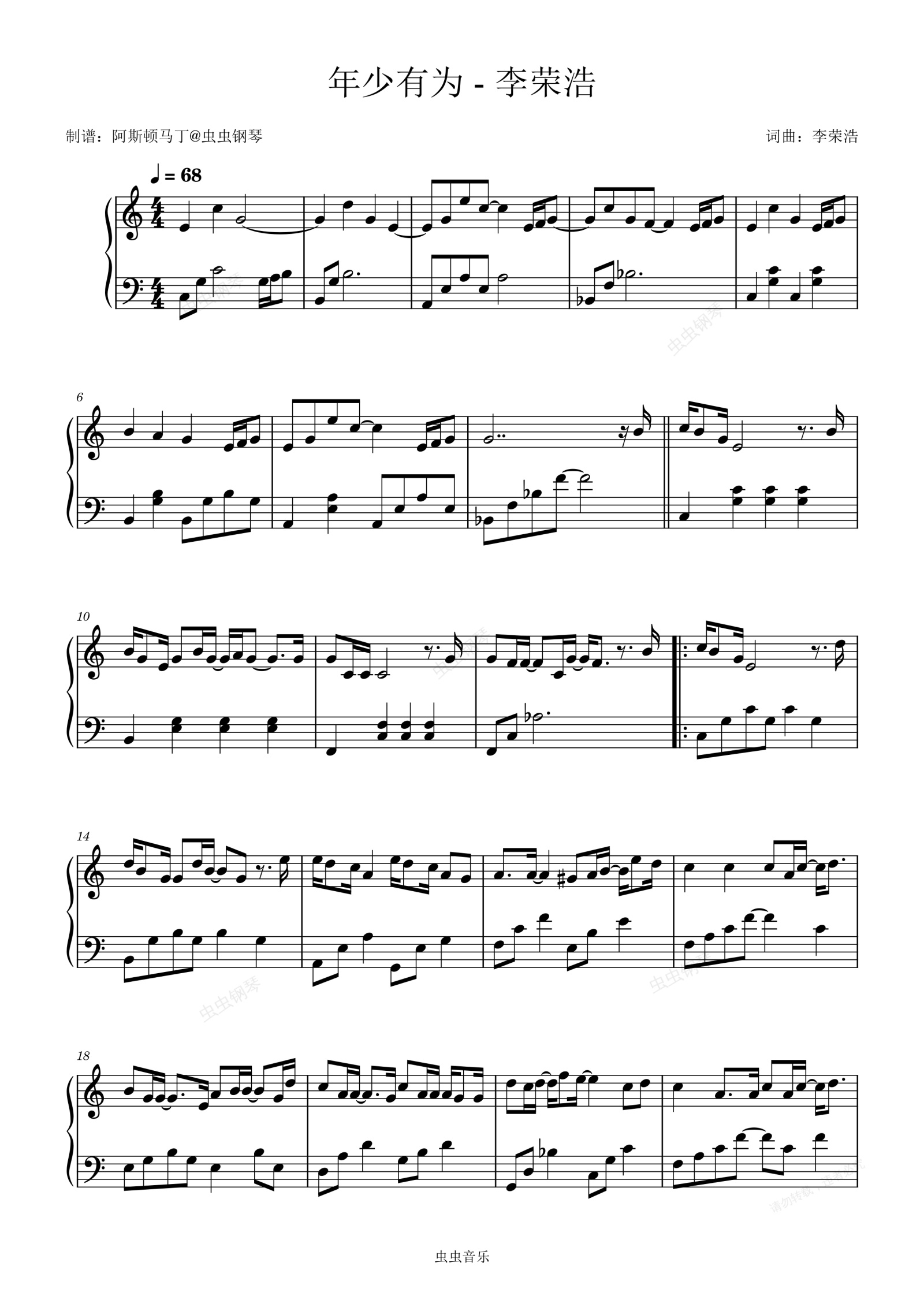 钢琴谱:年少有为 - 李荣浩【独奏】
