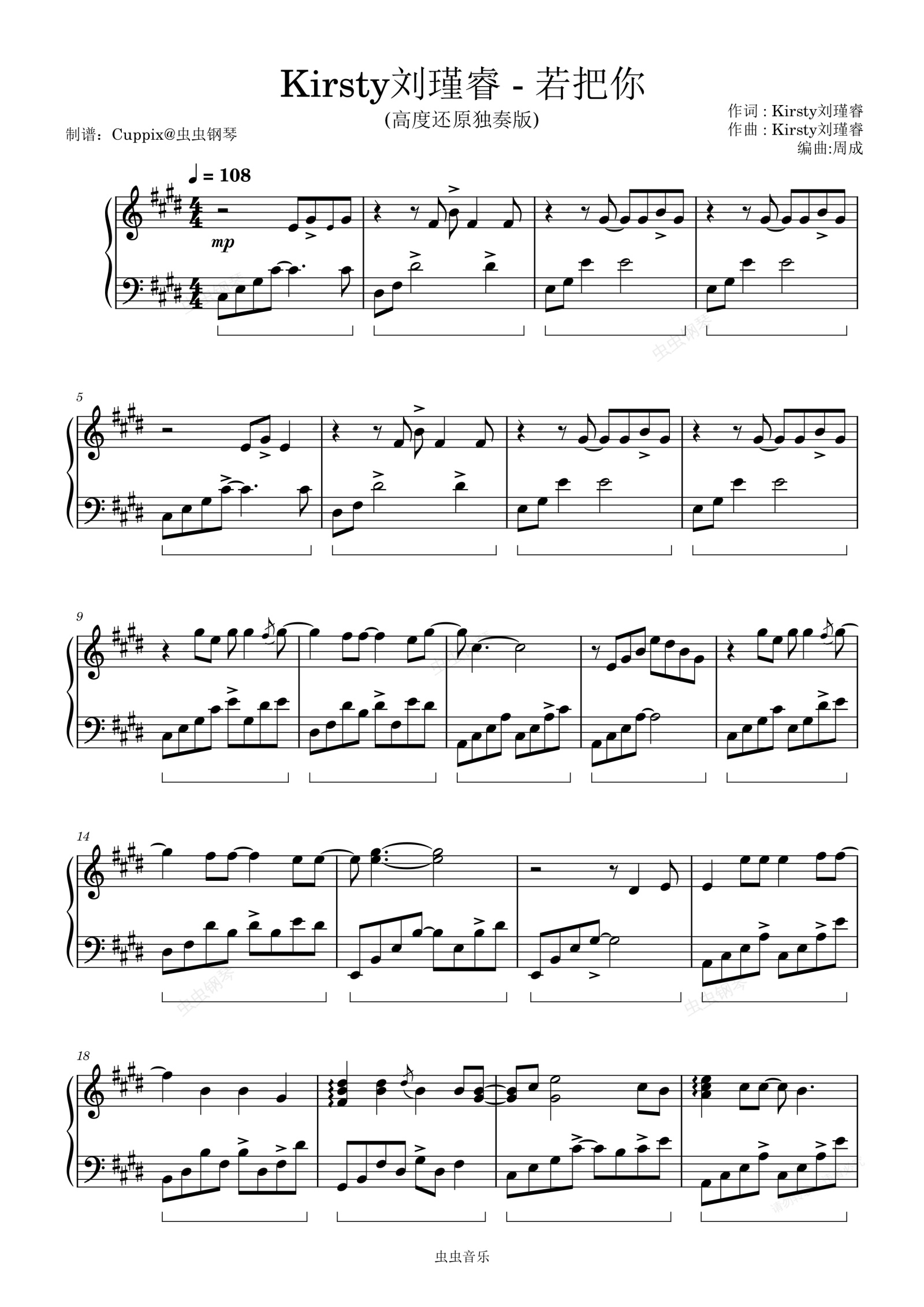 钢琴谱:《若把你》高度还原独奏版(Kirsty刘瑾睿)