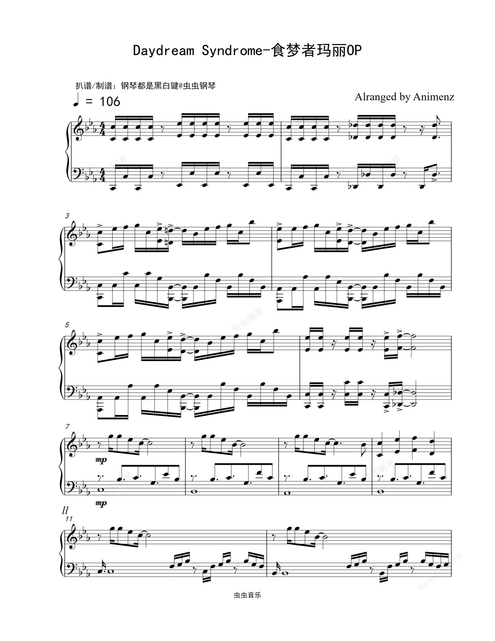 【Animenz版】Daydream Syndrome-食梦者玛丽OP 【爆燃钢琴独奏】