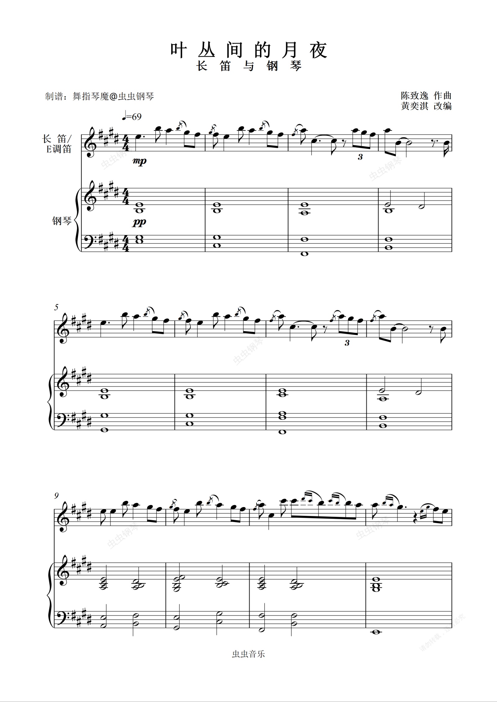 钢琴谱:叶丛间的月夜(长笛与钢琴)