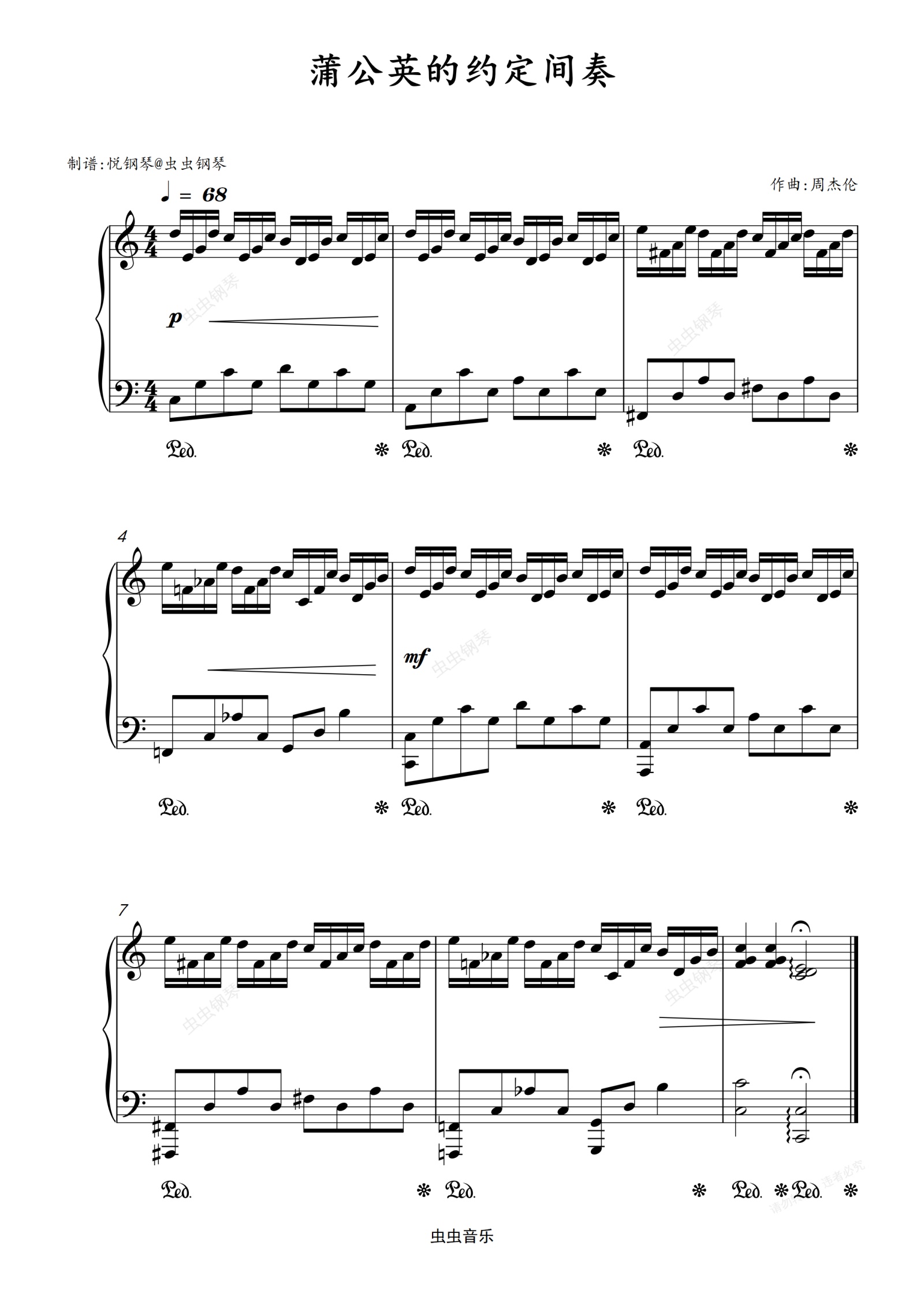 钢琴谱:蒲公英的约定 (免费乐谱) 周杰伦