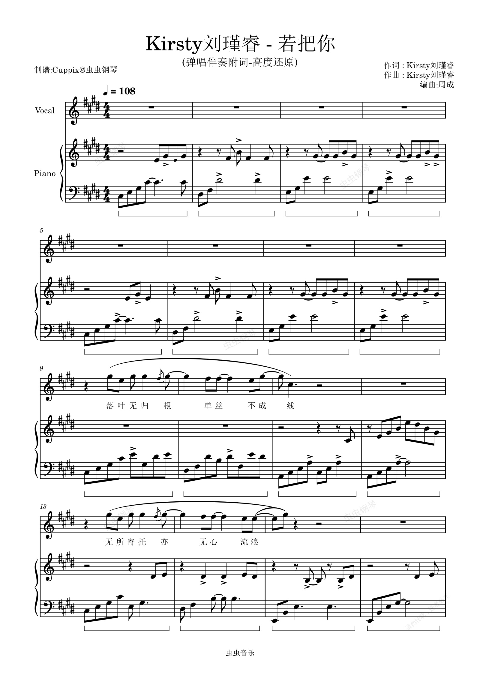 钢琴谱:《若把你》弹唱伴奏附词-高度还原(Kirsty刘瑾睿)
