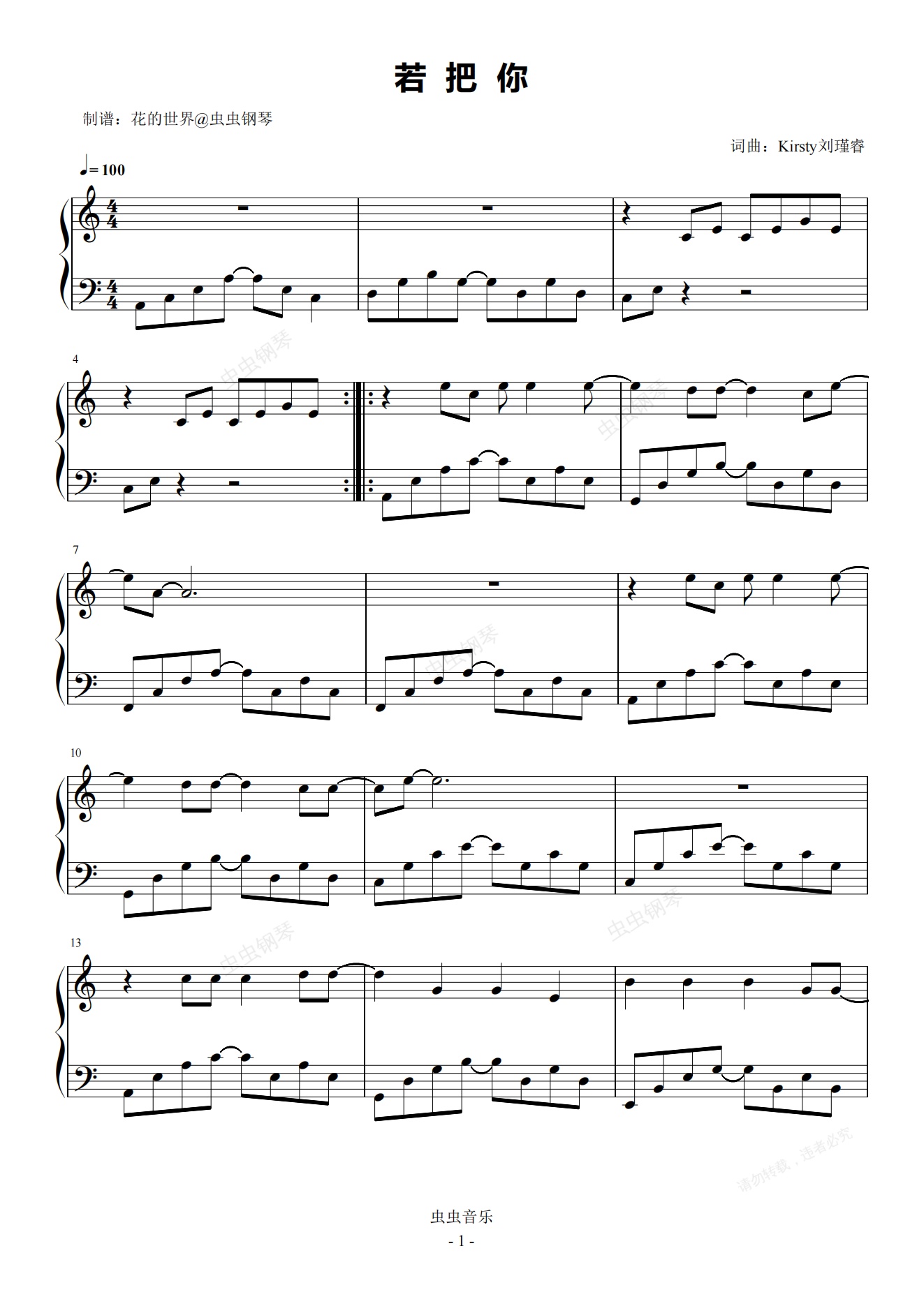 钢琴谱:若把你 C调简易版 Kirsty刘瑾睿