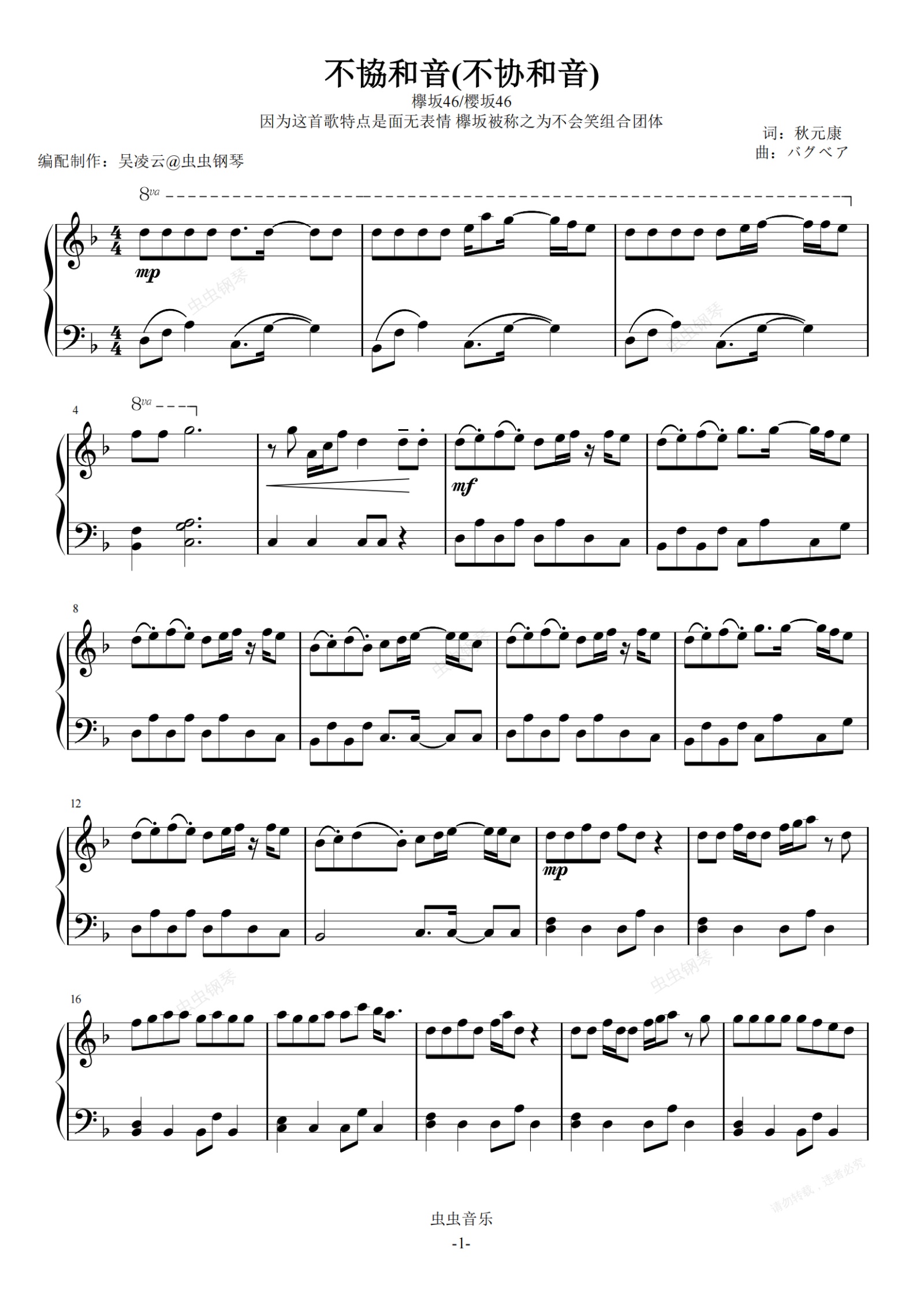 钢琴谱:不協和音(不协和音) 欅坂46/樱坂46 钢琴演奏版 因为这首歌欅坂被称之为不会笑组合