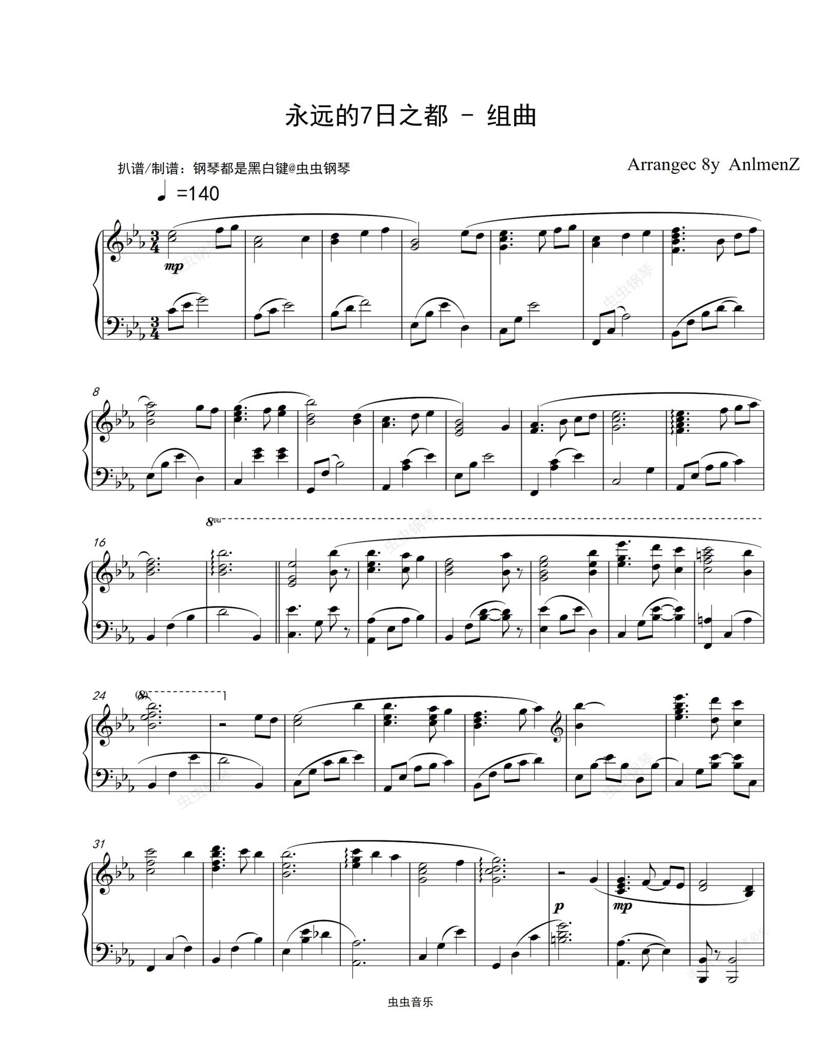 持续更新A叔作品 我的主页还有A叔曲谱集 还希望点个收藏 后面会更新轻音乐、动漫音乐、书房音乐、如果你喜欢我的作品不要忘了点收藏加关注哦