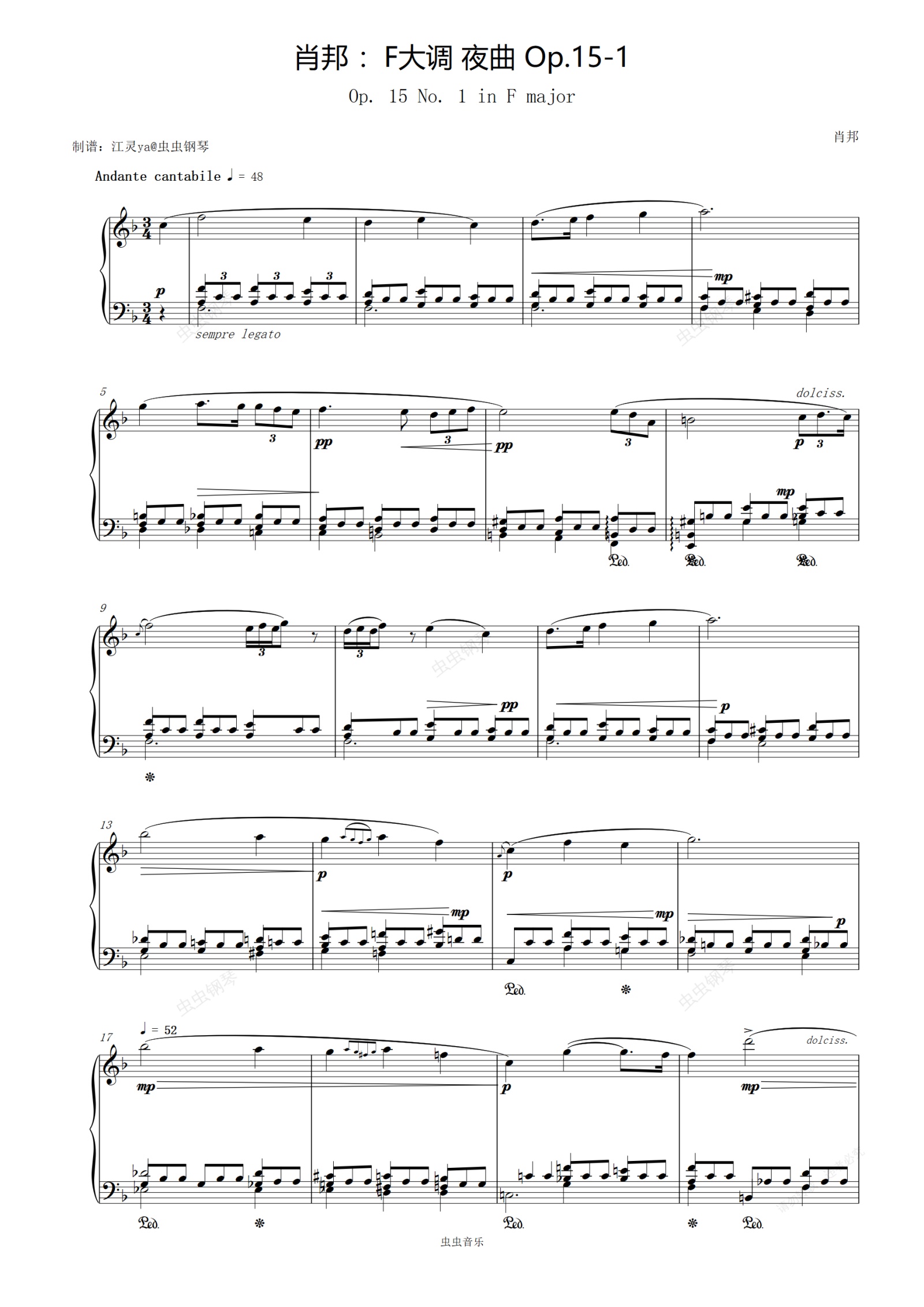 钢琴谱:肖邦 :F大调 夜曲 Op.15-1