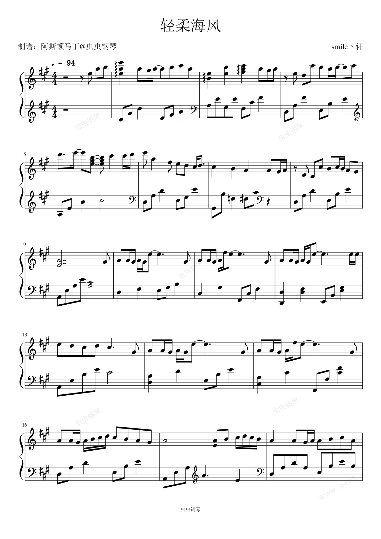 钢琴谱:轻柔海风 - smile丶轩【独奏】