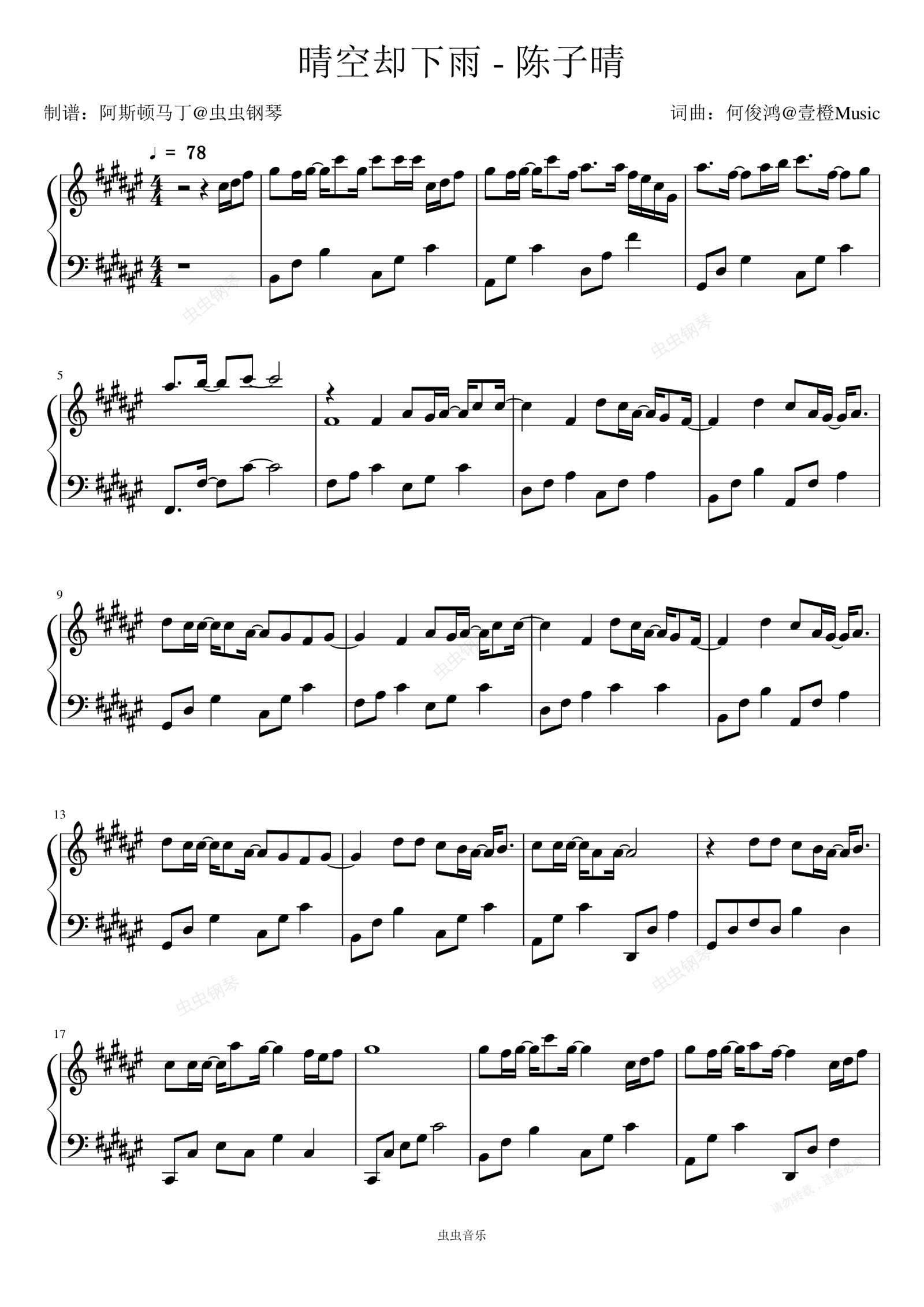 钢琴谱:晴空却下雨 - 陈子晴【独奏】