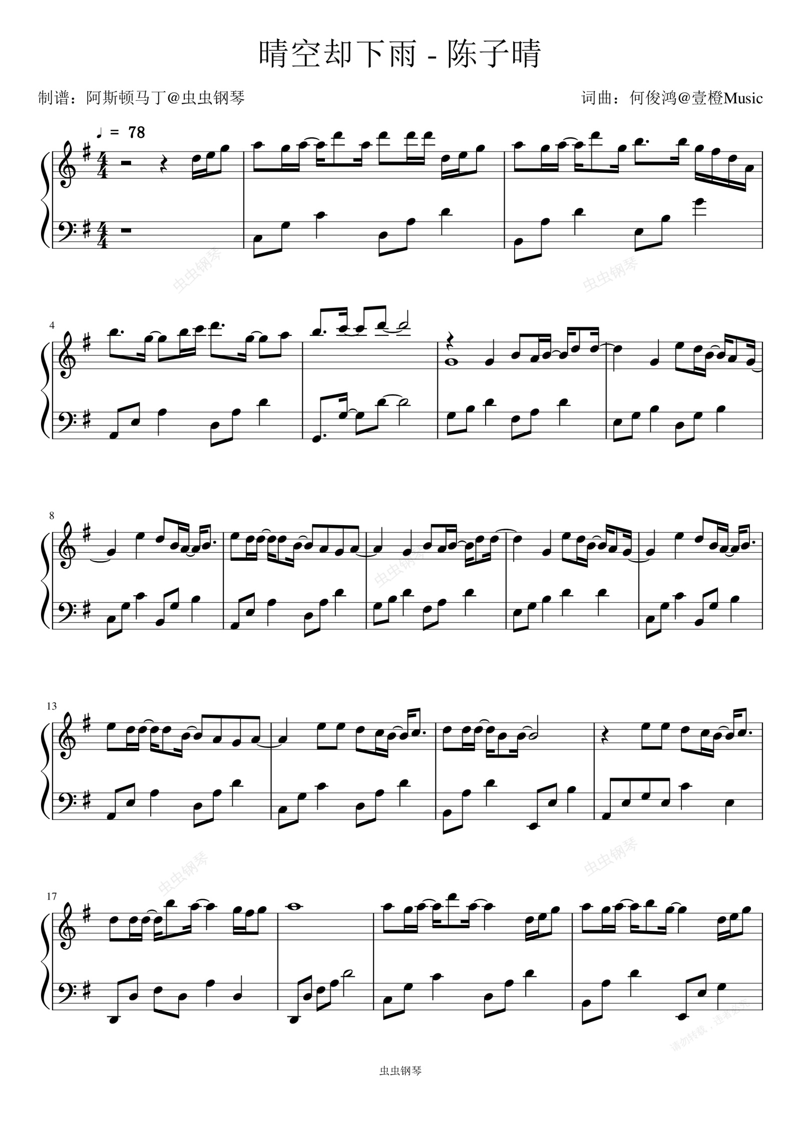 钢琴谱:晴空却下雨 - 陈子晴【独奏】