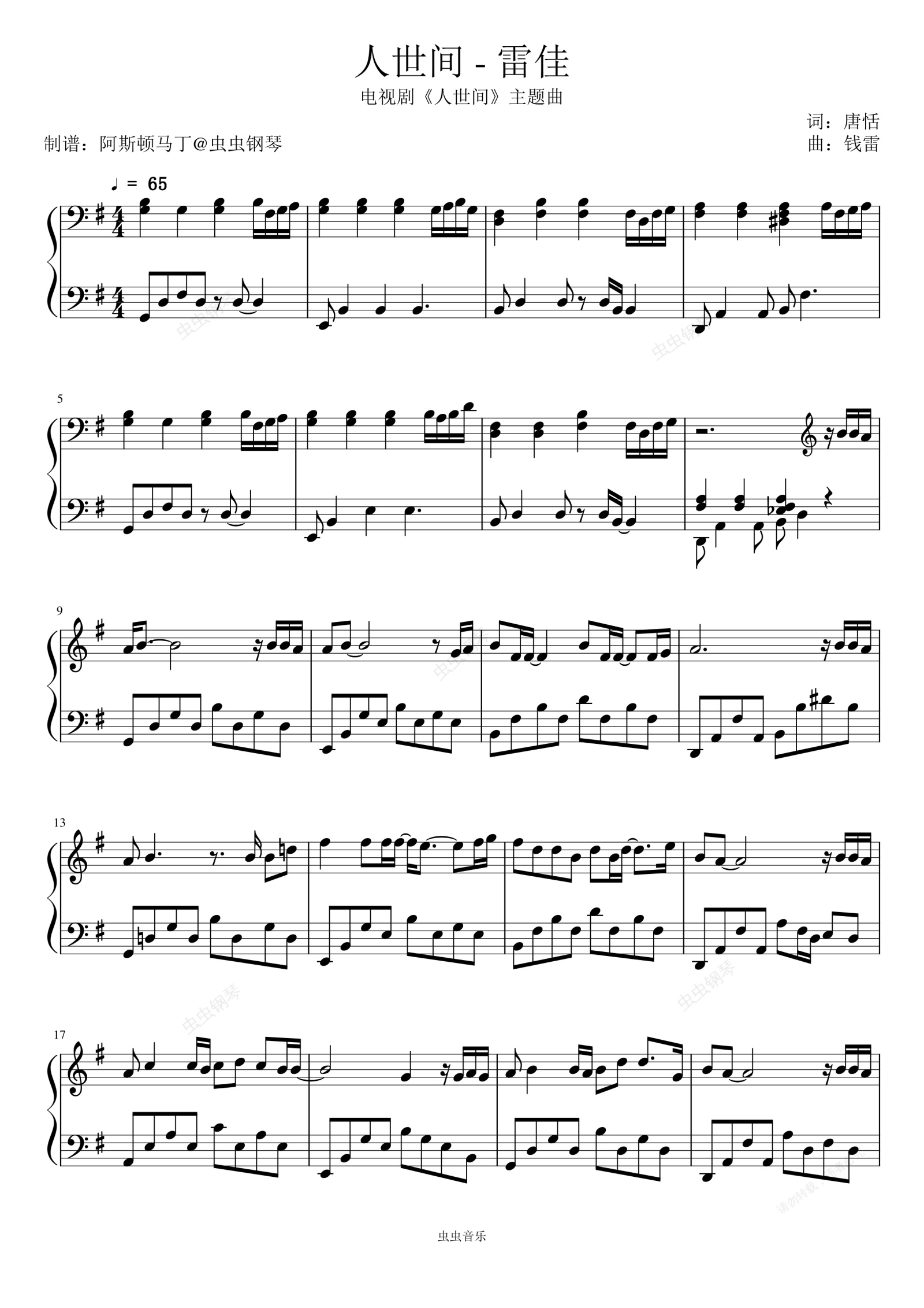 钢琴谱:人世间 (电视剧《人世间》主题曲) - 雷佳【独奏】