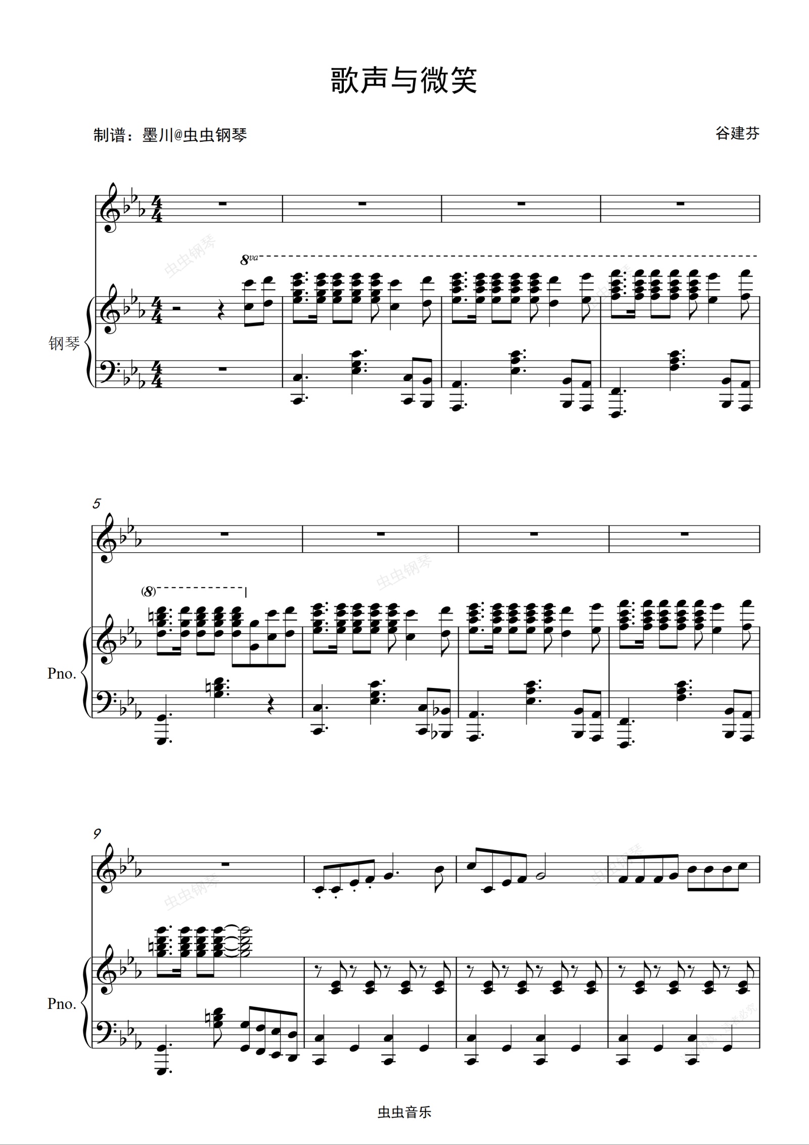 钢琴谱:歌声与微笑 —陈筱路—降E调伴奏
