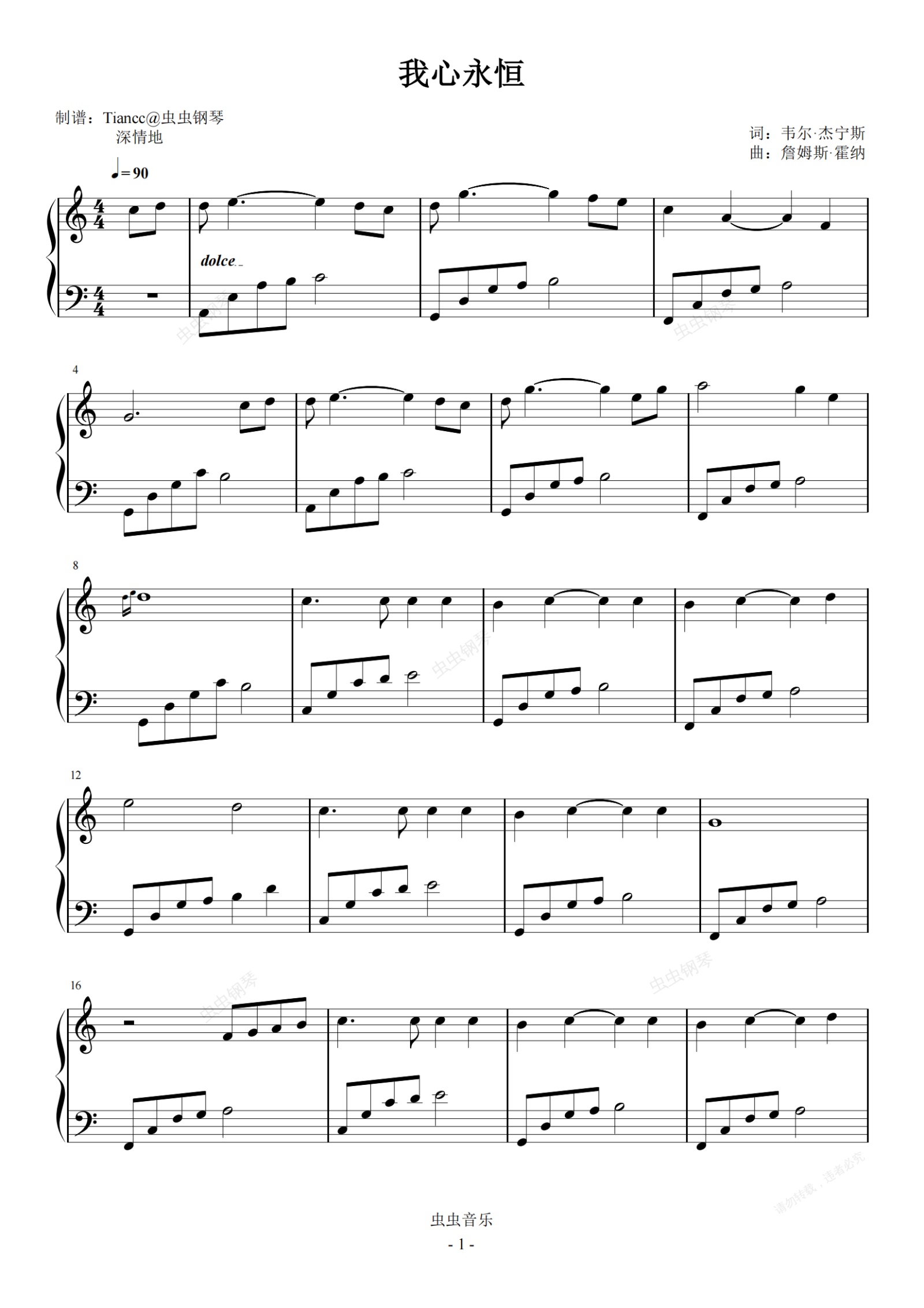 钢琴谱:《我心永恒》成人教学专用~拜厄难度