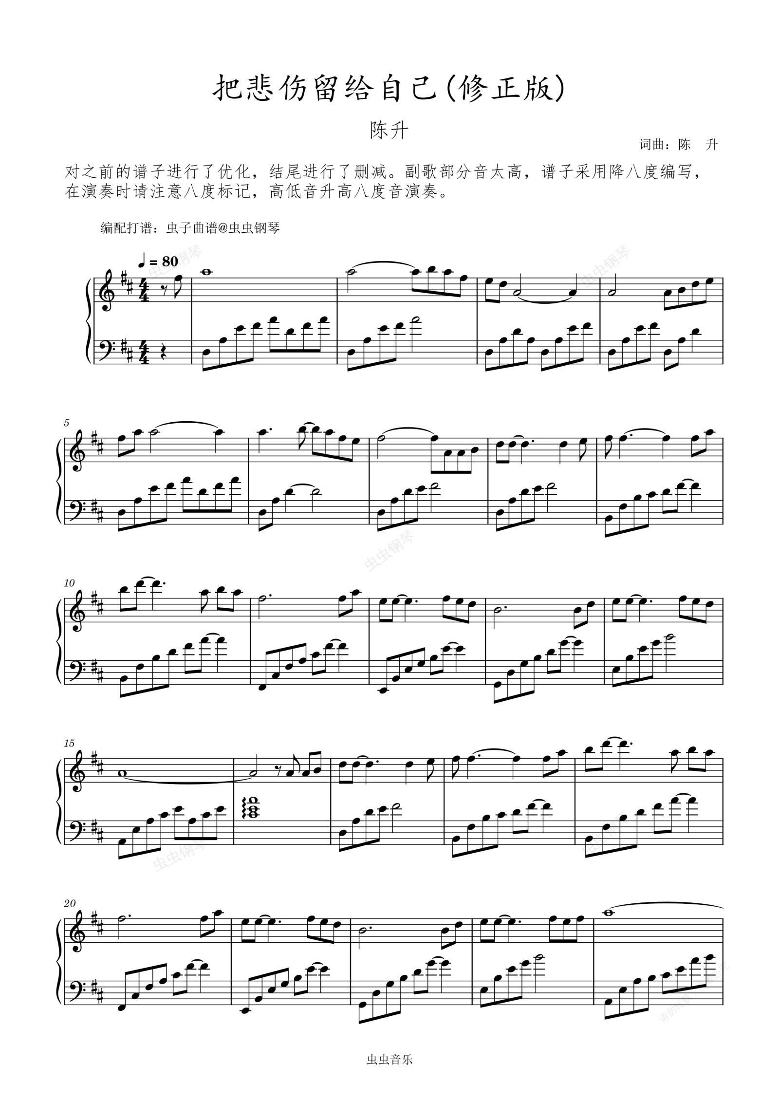 钢琴谱:把悲伤留给自己 - 修正版(原D大调编配)