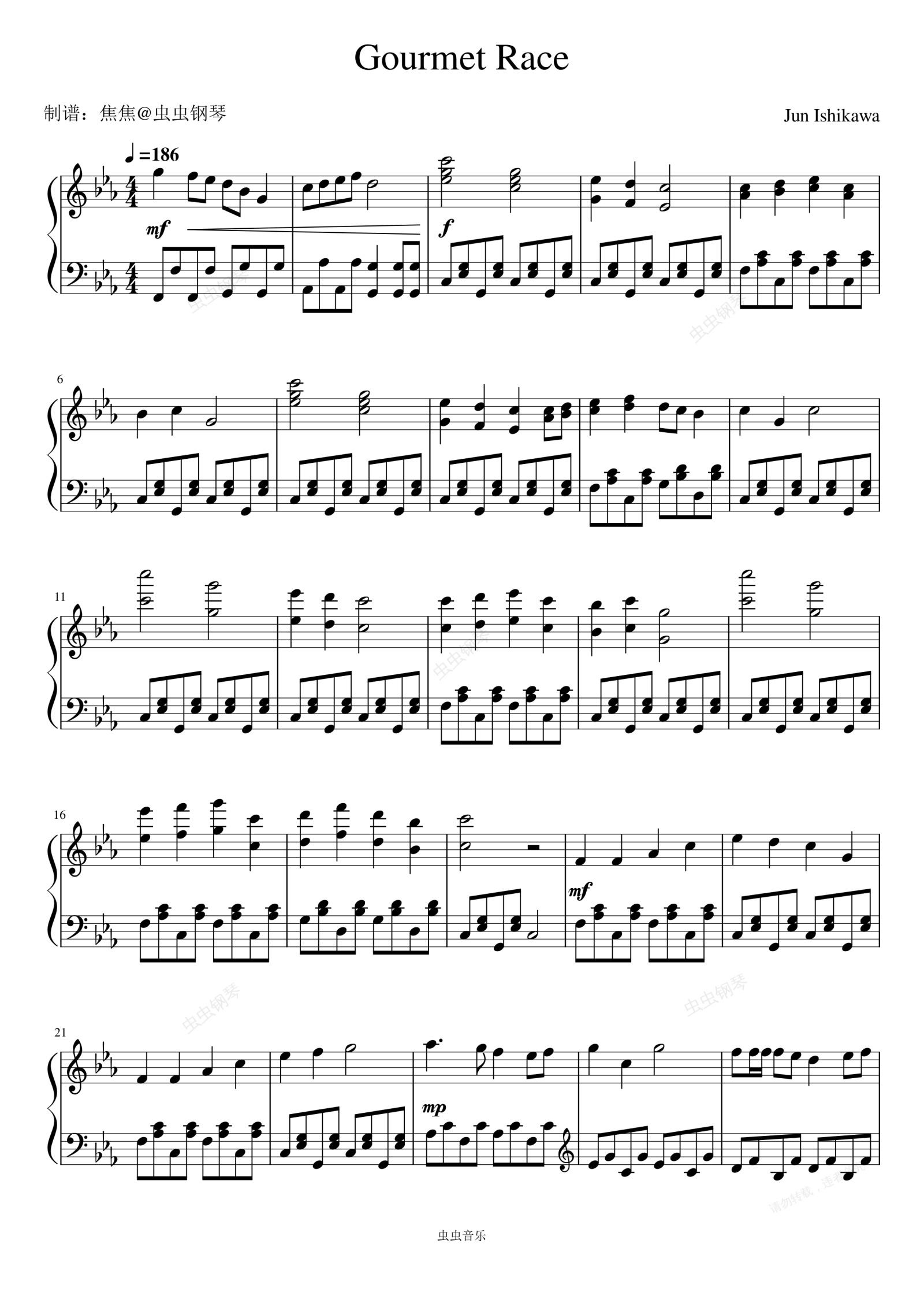 钢琴谱:Gourmet Race - Jun Ishikawa
