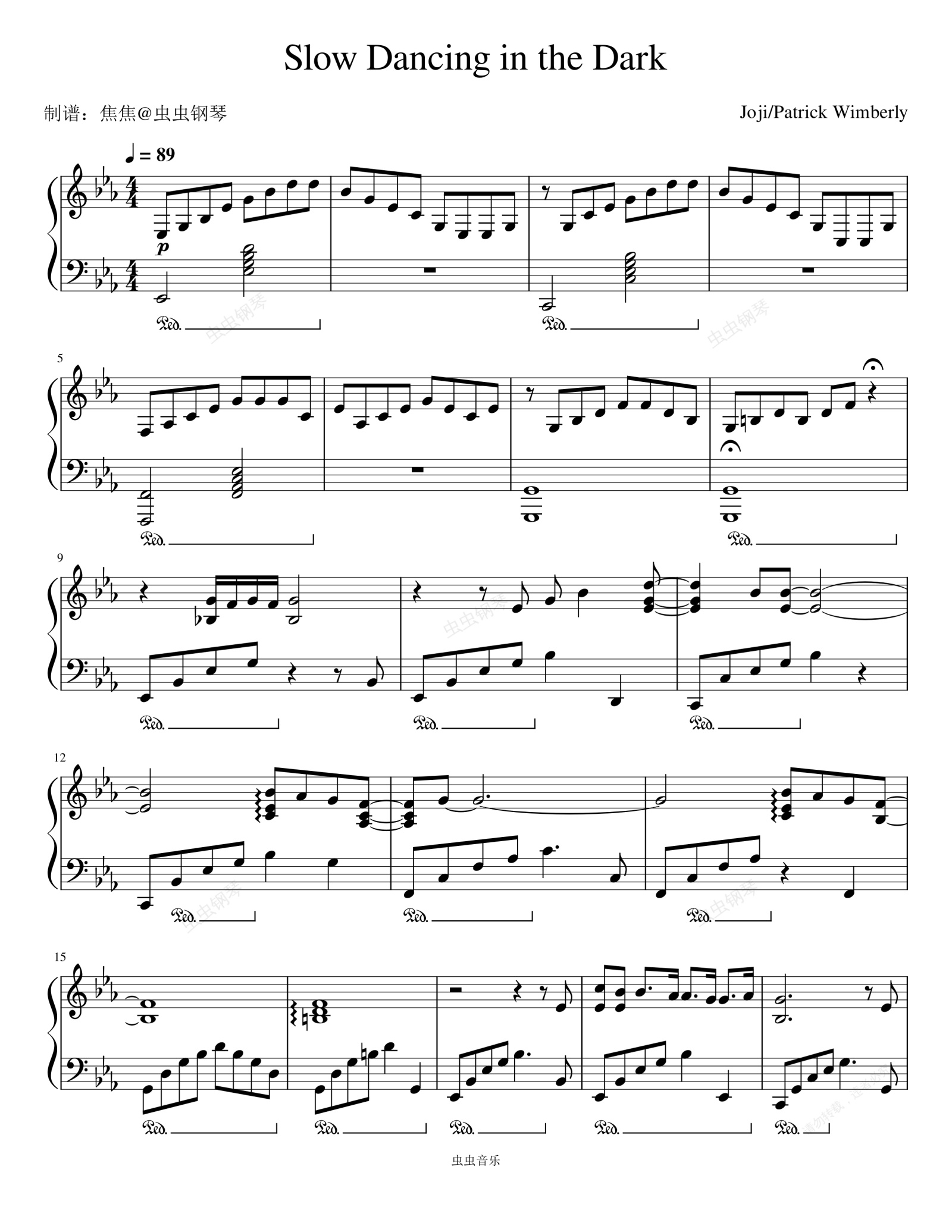 钢琴谱:SLOW DANCING IN THE DARK - Joji