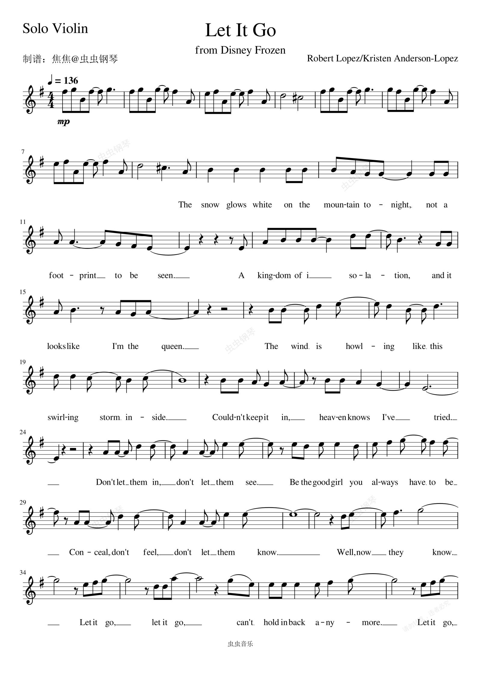 钢琴谱:Let It Go (From "Frozen"|Soundtrack Version) - Idina Menzel