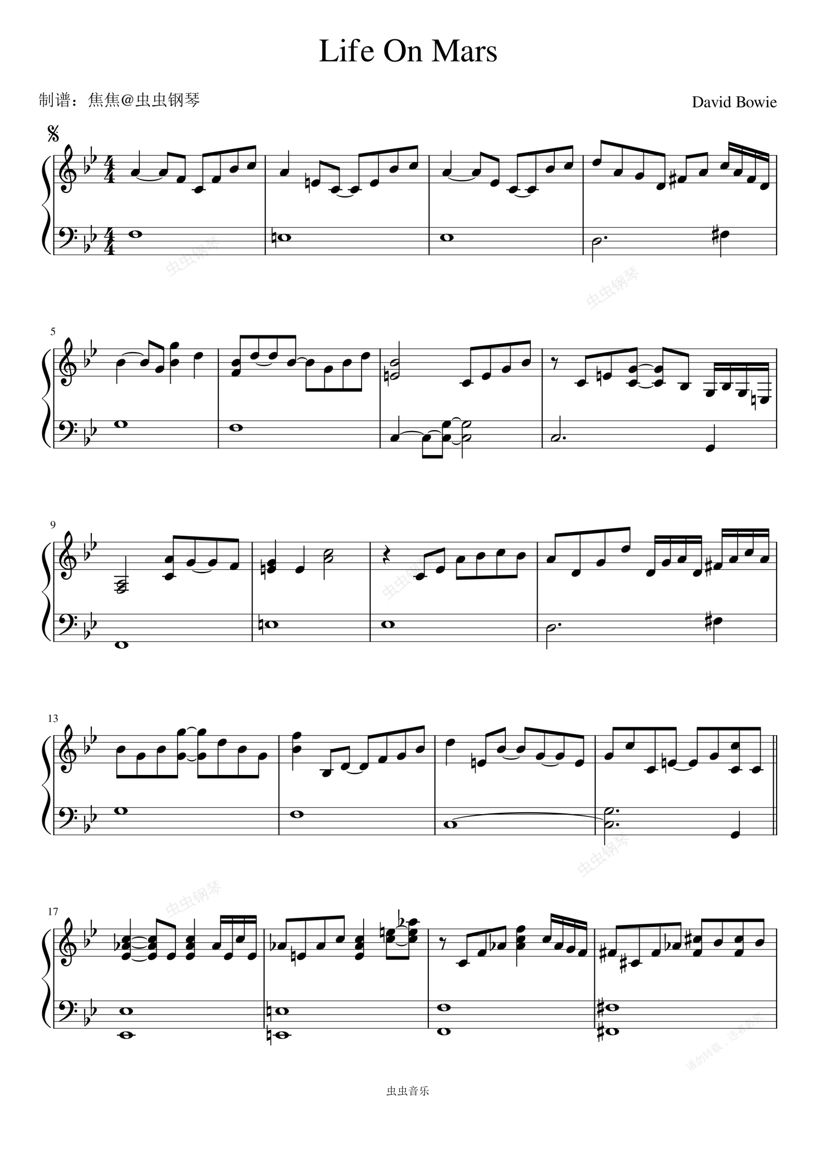 钢琴谱:Life On Mars
