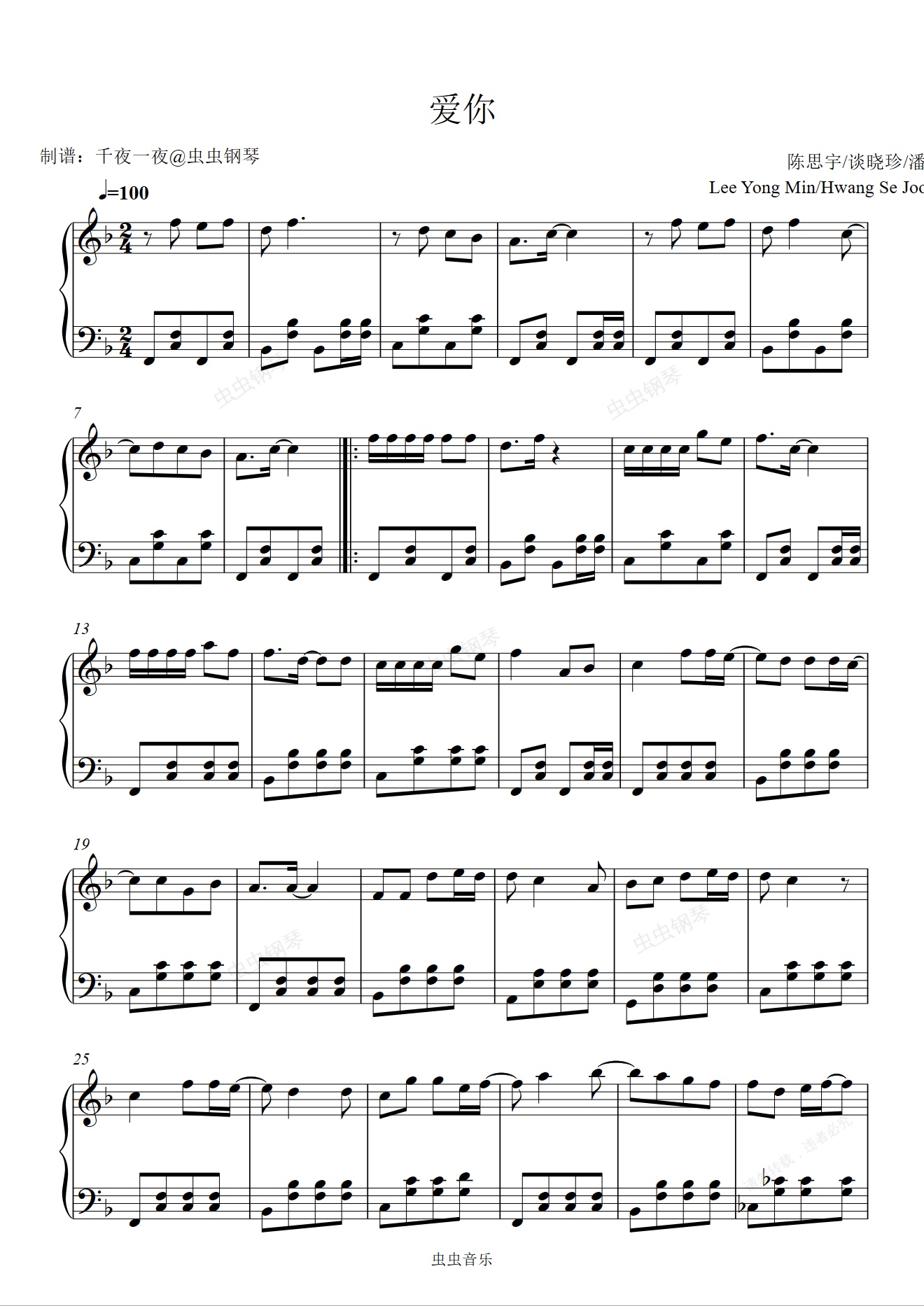钢琴谱:王心凌《爱你》|钢琴版(带你梦回青春)
