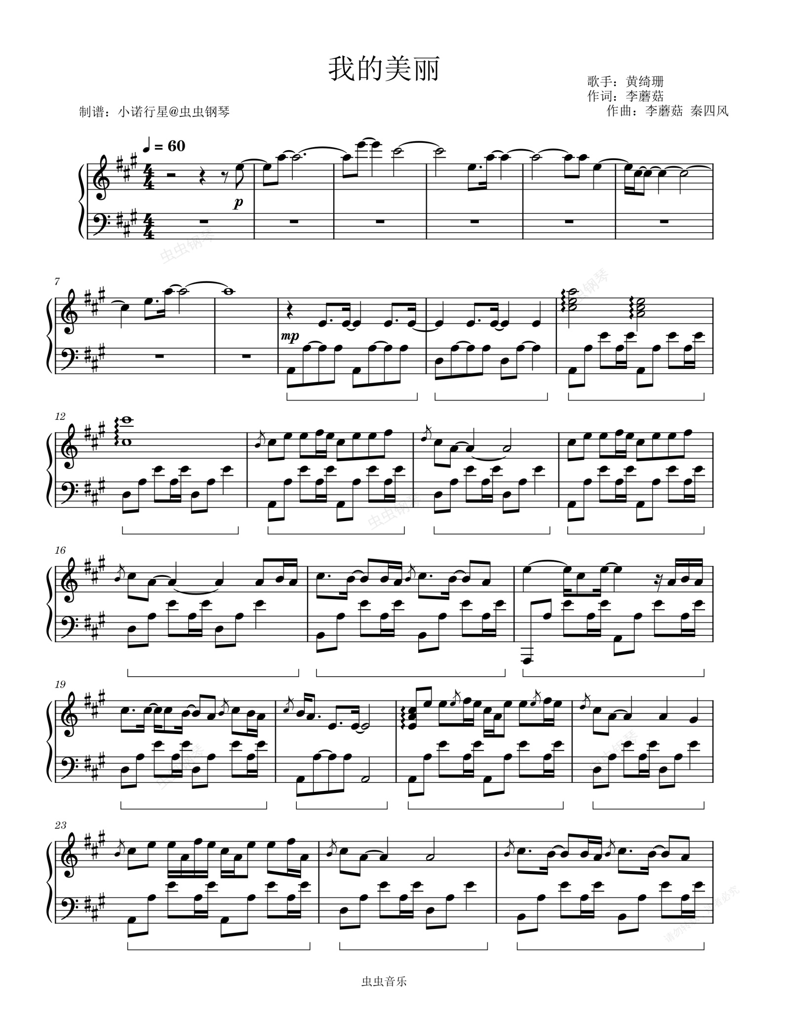 钢琴谱:我的美丽-唯美钢琴独奏