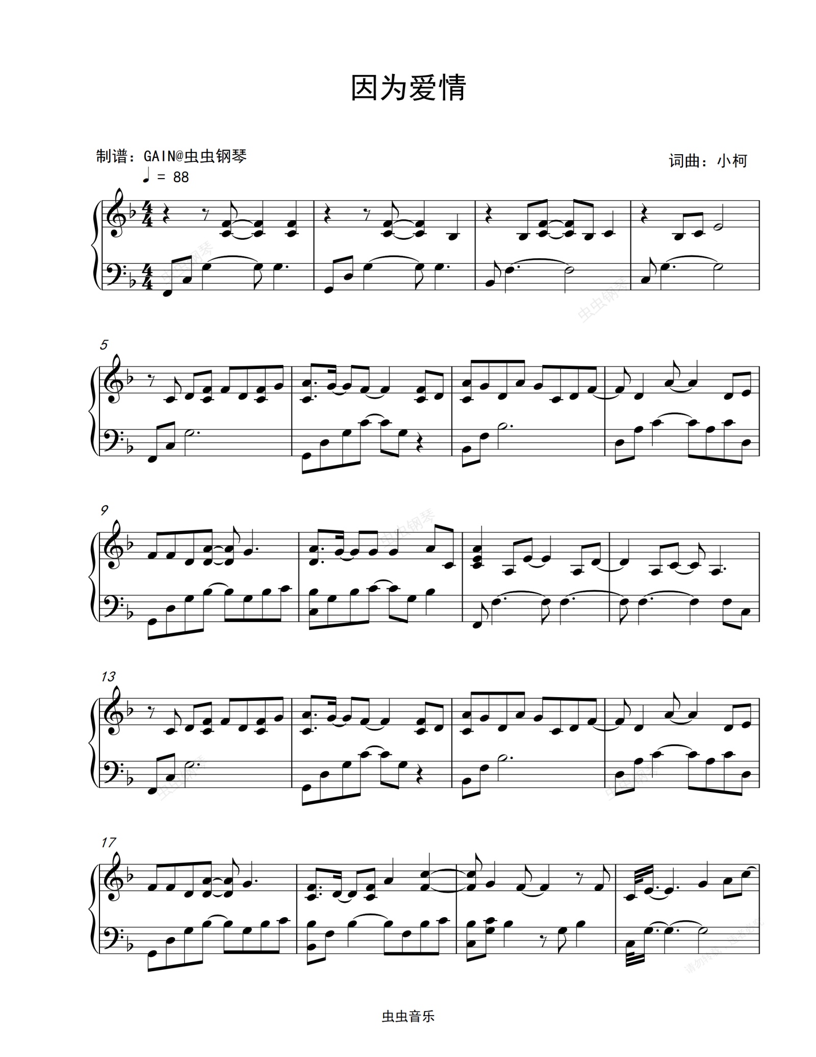 钢琴谱:因为爱情-王菲/陈奕迅