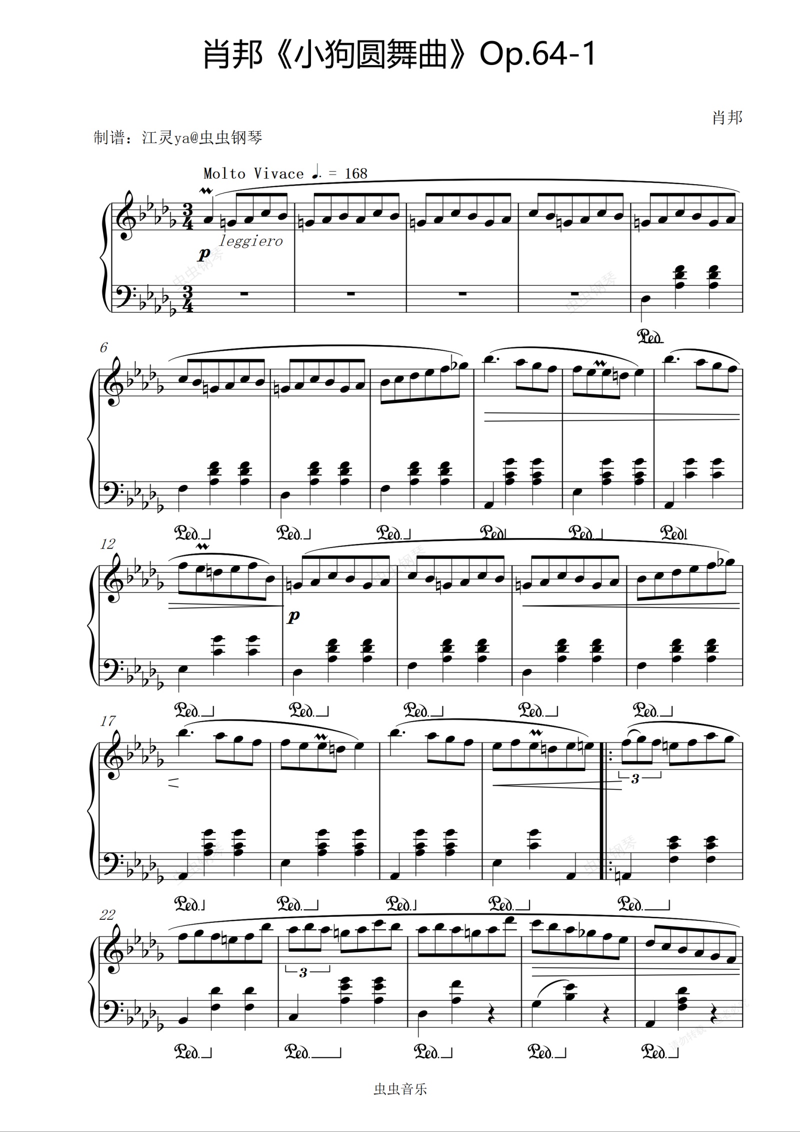 钢琴谱:肖邦《小狗圆舞曲》Op.64 No.1