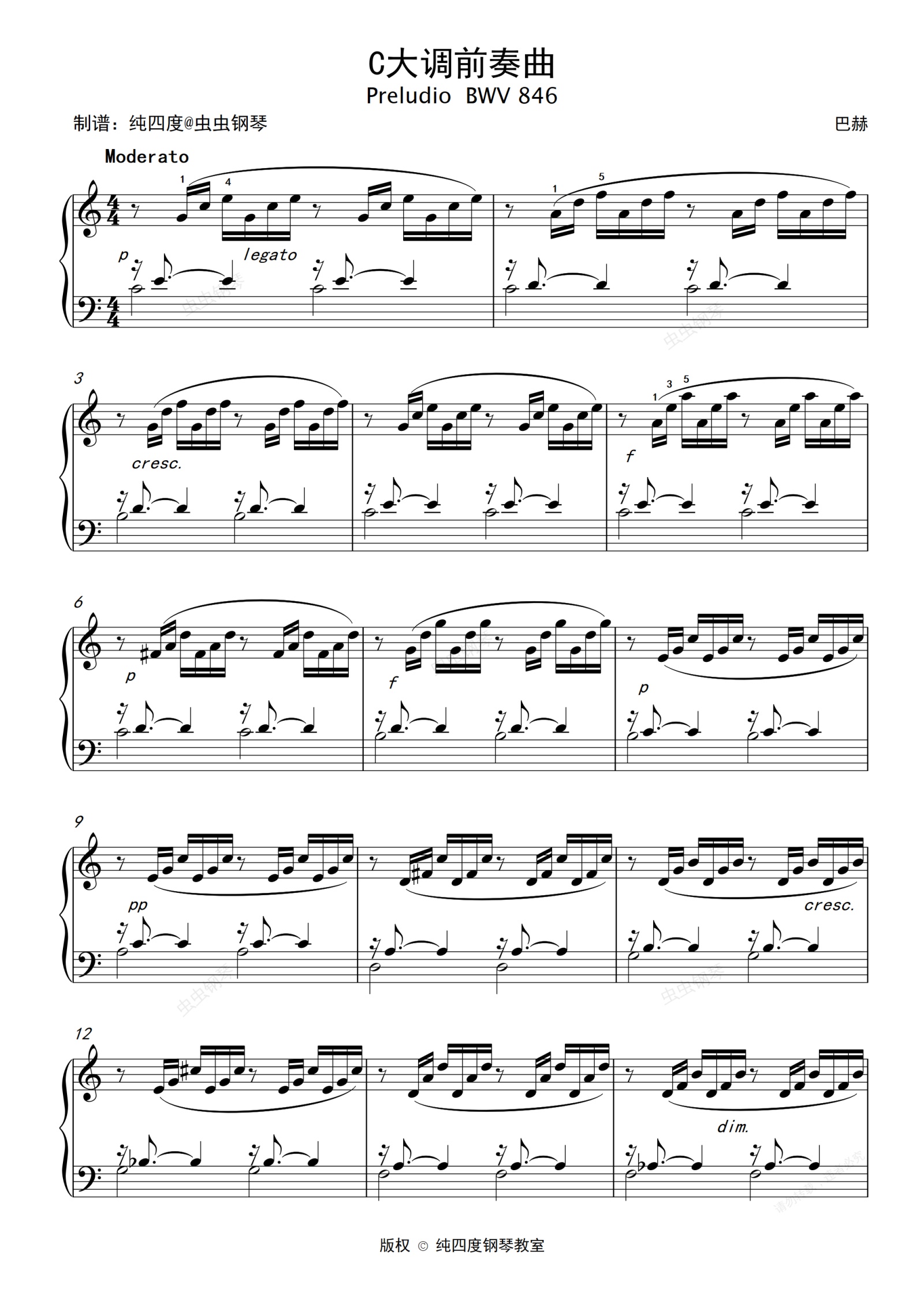 钢琴谱:巴赫 C大调前奏曲 BWV846