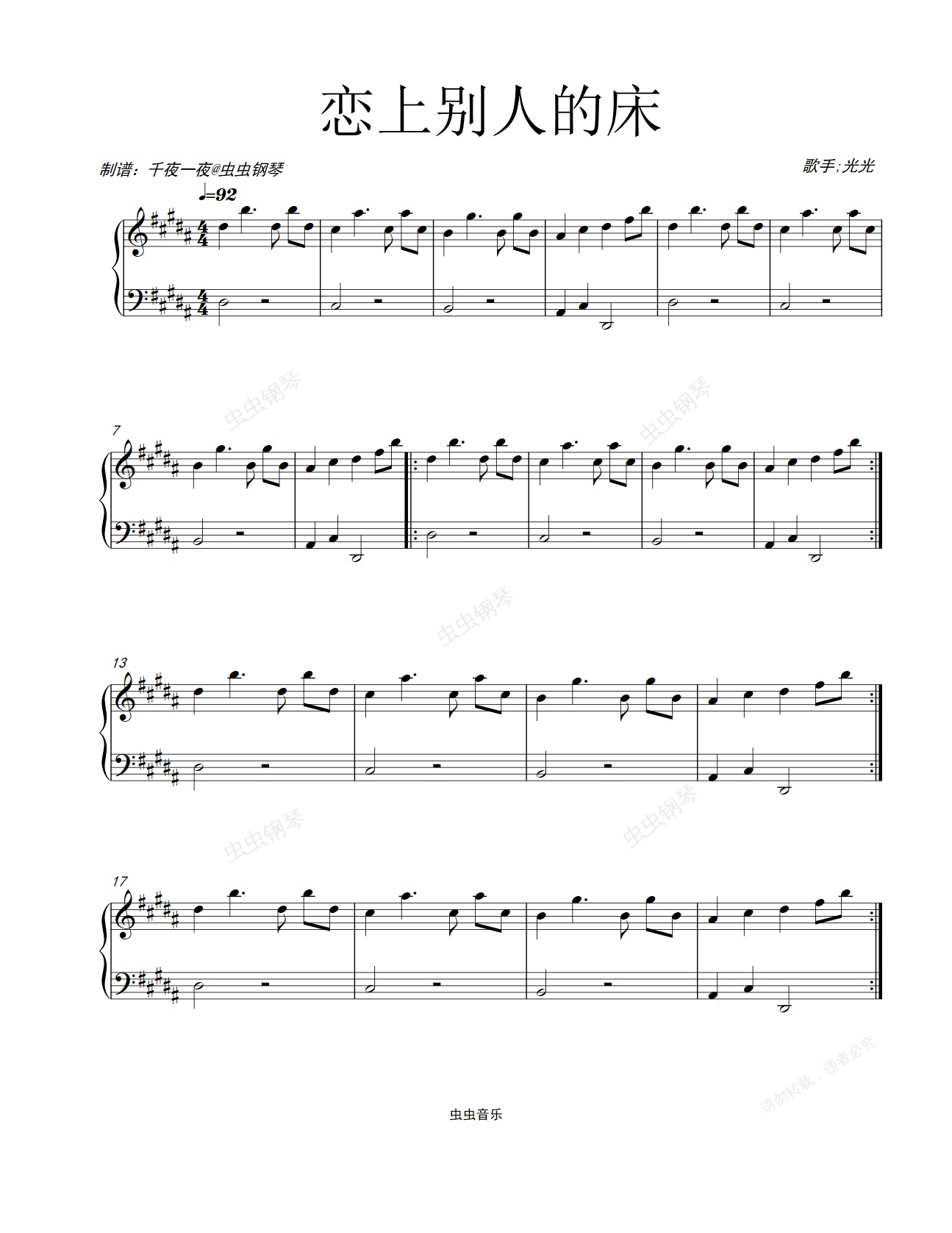 钢琴谱:经典老歌《恋上别人的床》好听至极,一首歌影响3代人