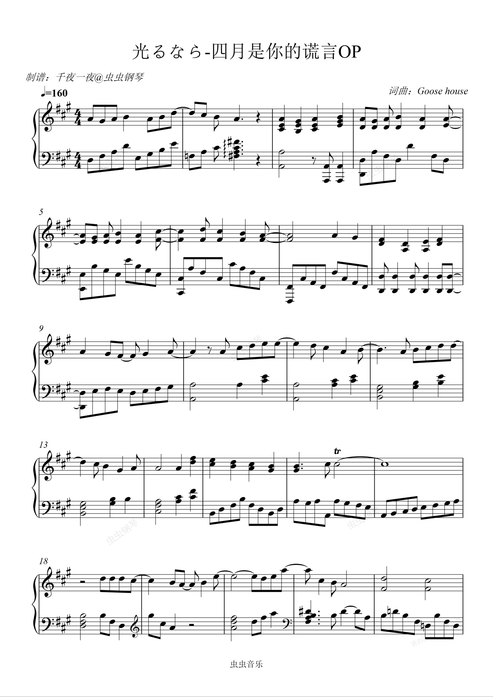 钢琴谱:【钢琴】《四月是你的谎言》ost《Again》/ OP《光るなら》