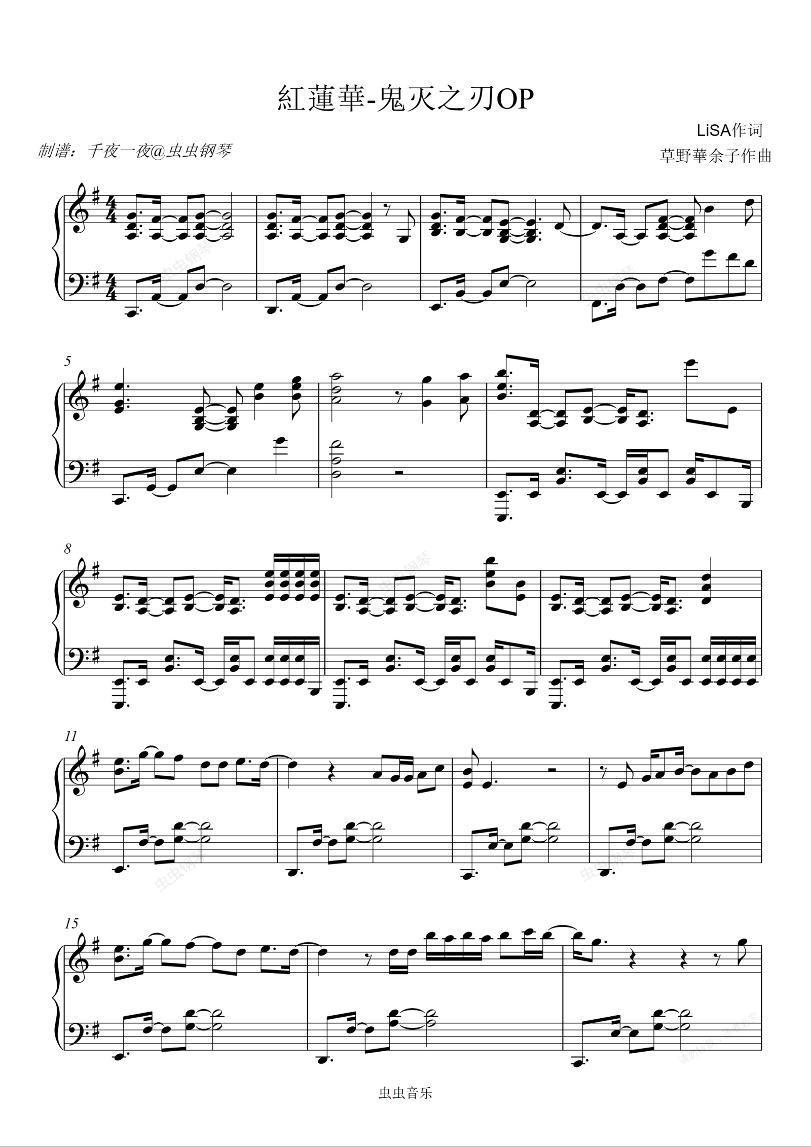 钢琴谱:紅蓮華 - 鬼灭之刃 OP 钢琴版