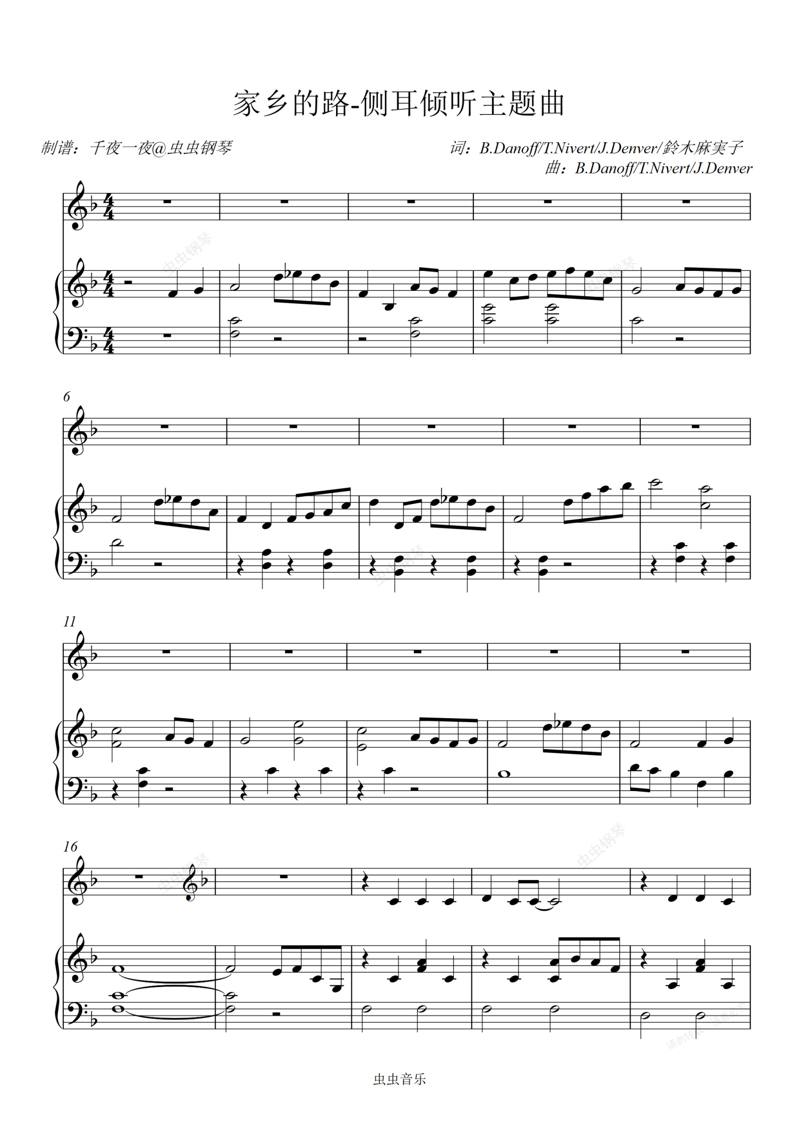 钢琴谱:家乡的路-日漫《侧耳倾听》主题曲《country road》~经典