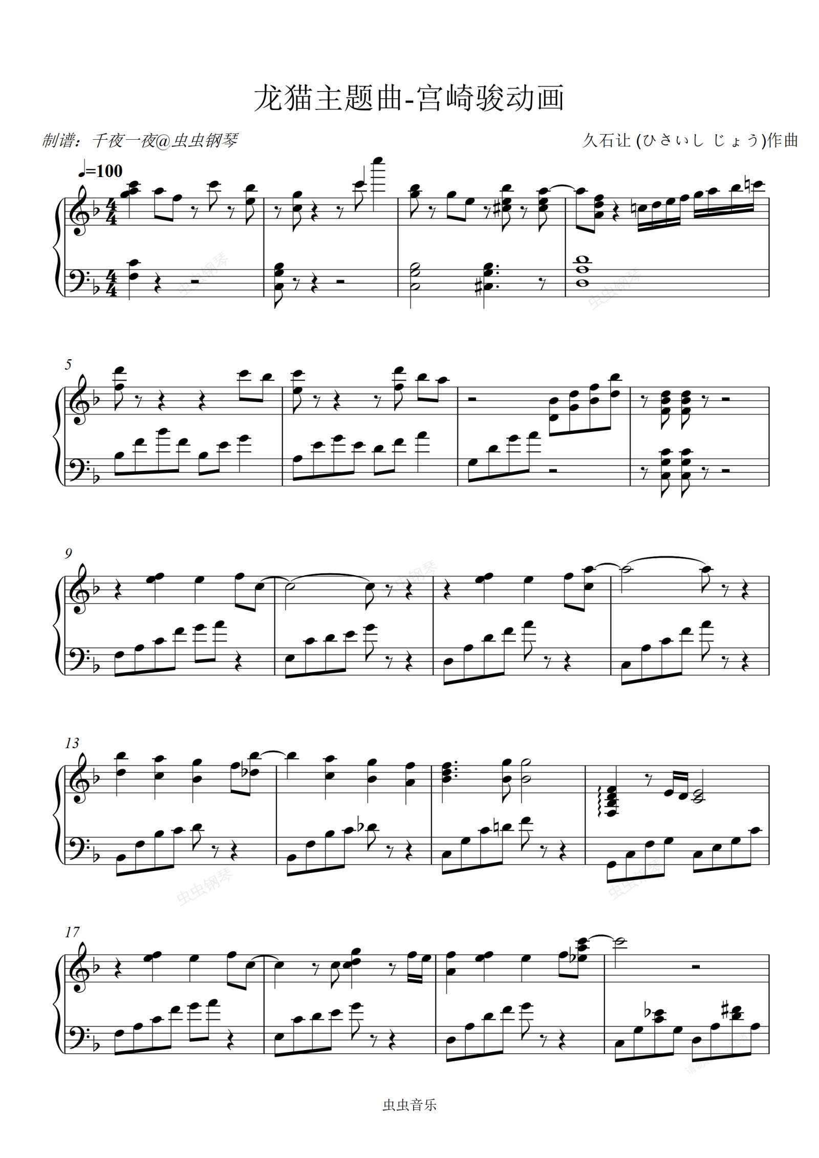 钢琴谱:[钢琴独奏] 龙猫主题曲《我的邻居多多洛》宫崎骏