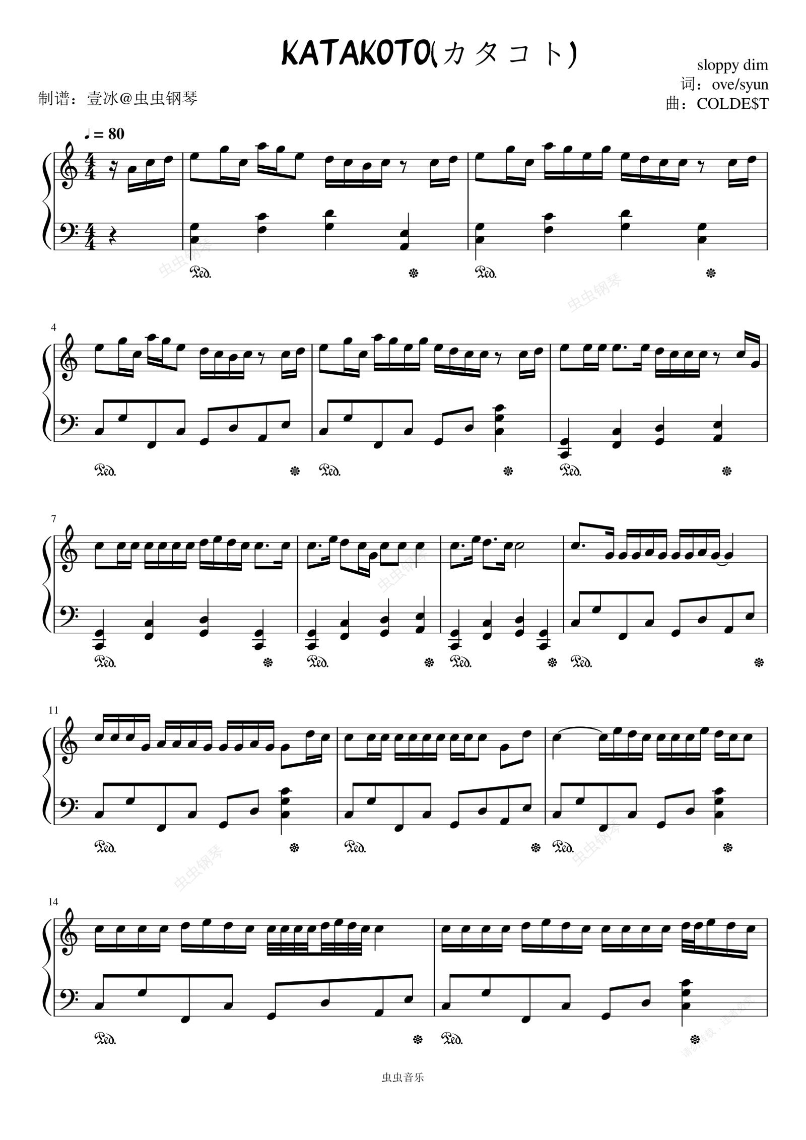 钢琴谱:KATAKOTO(カタコト)-C调版