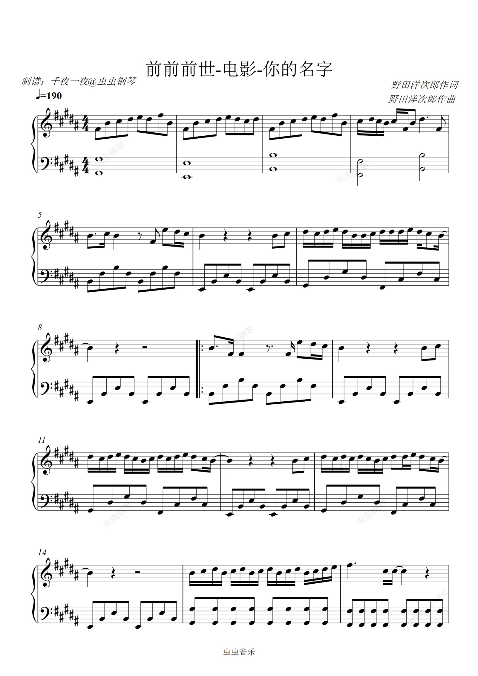 钢琴谱:电影《你的名字》主题曲《前前前世》