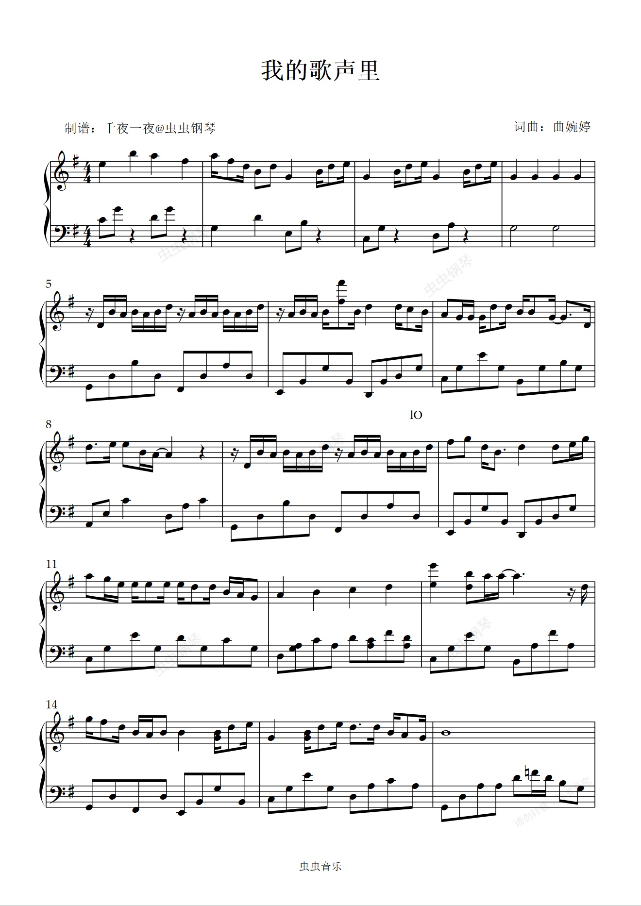 钢琴谱:【钢琴】我的歌声里-曲婉婷 钢琴版~