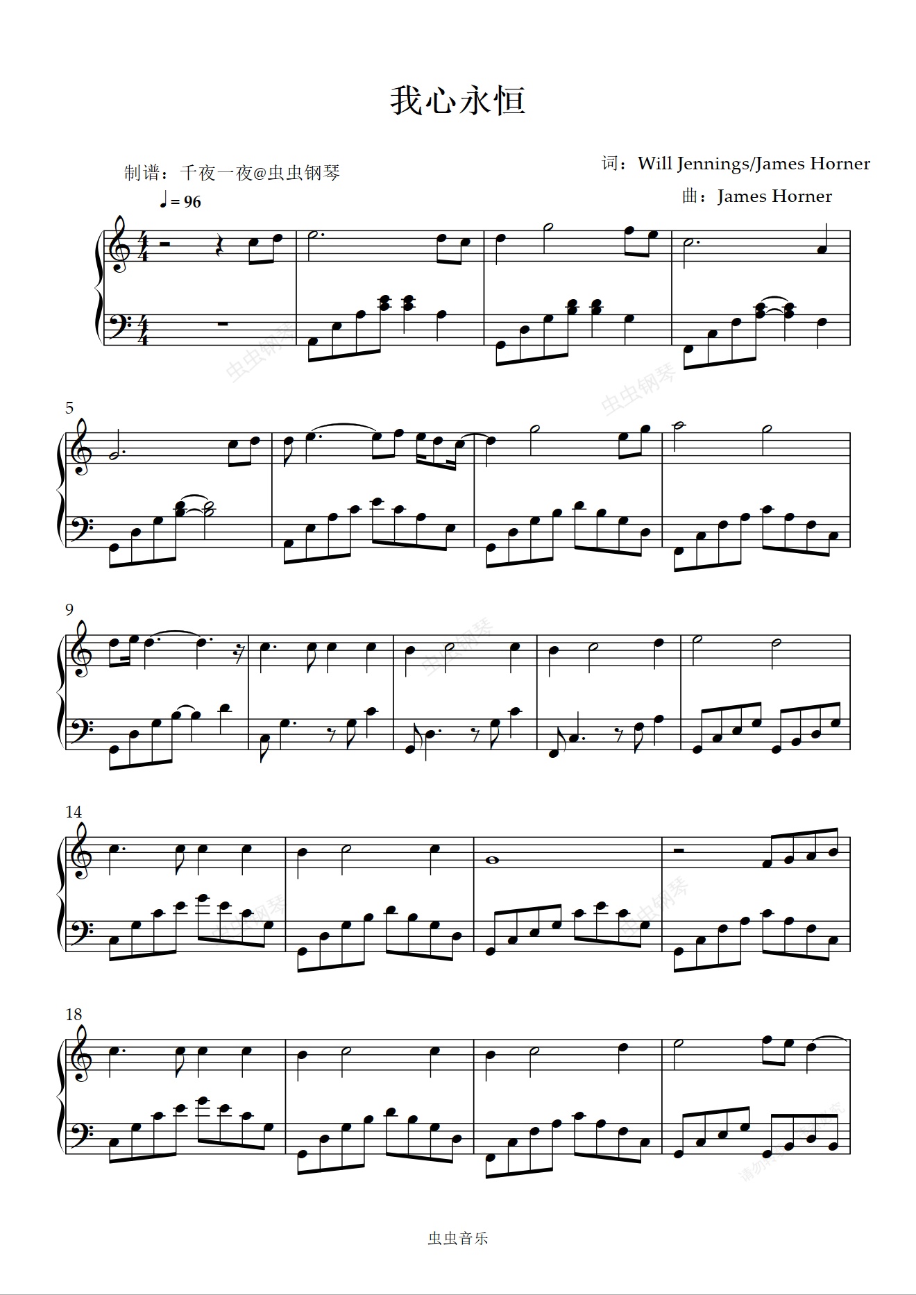 钢琴谱:泰坦尼克号 我心永恒 钢琴独奏 My Heart Will Go On