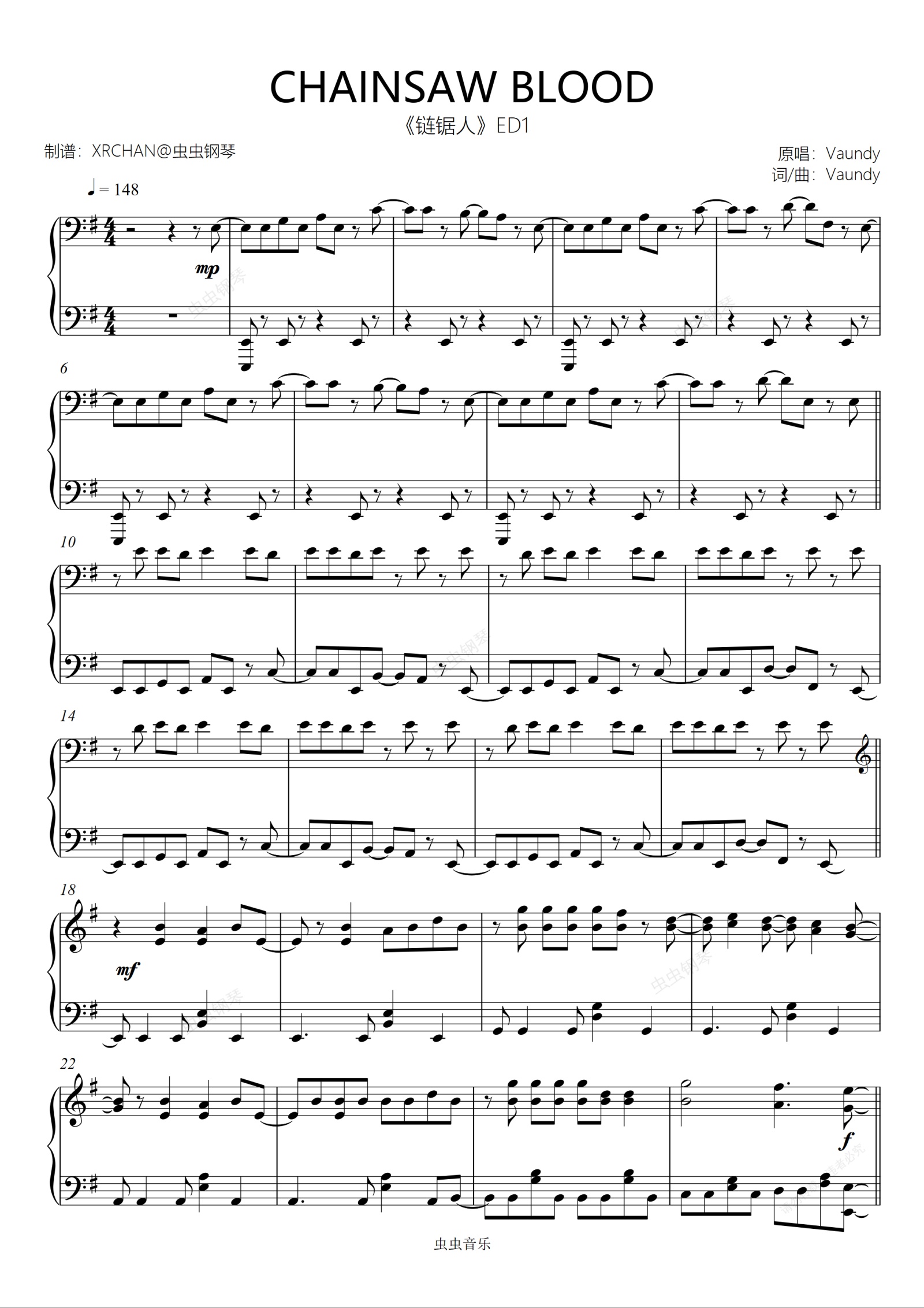 钢琴谱:链锯人 ED1 CHAINSAW BLOOD 初级